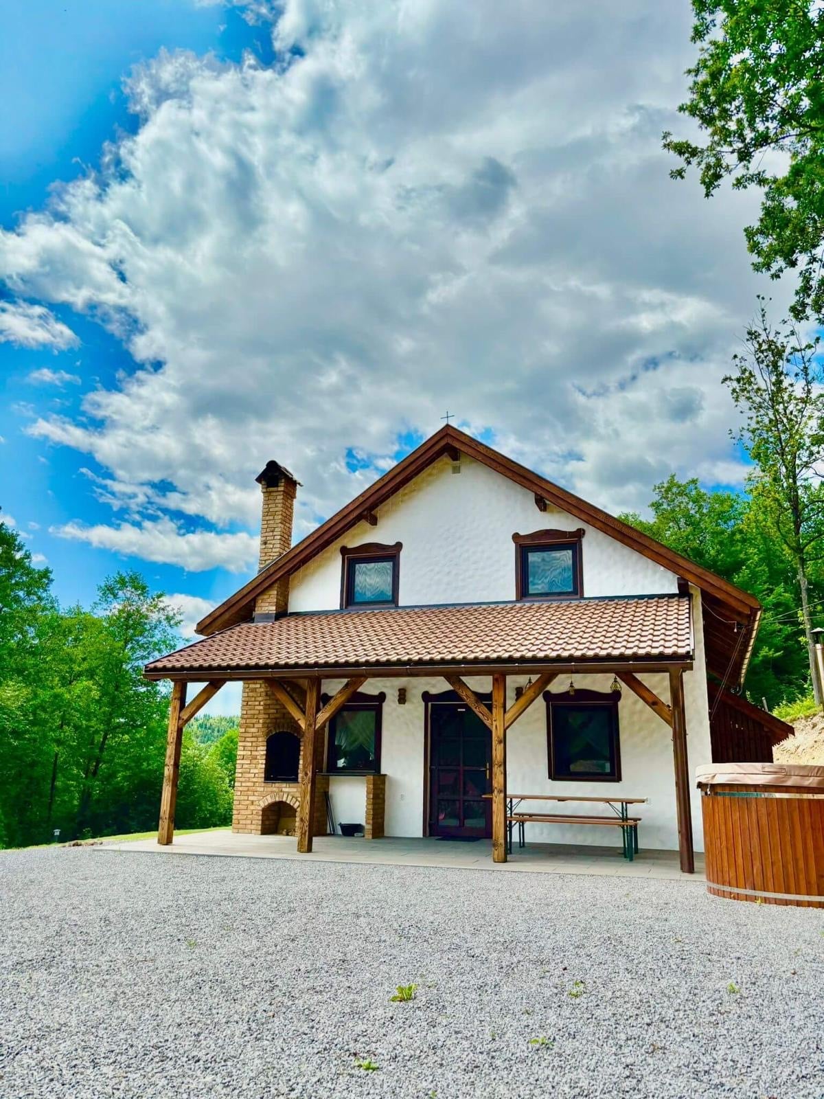 Indawo ethe cwaka, epholileyo yokuphumla embindini welali. Umphandle wayo onobubele, ufihla ifenitshala yale mihla, ekhanyayo. Amagumbi avuliwe kwigumbi lokuhlala elinekhephu elivulekileyo elijonge igadi. Baneebhedi ezimbini okanye ezintathu ezinamagumbi okuhlambela ahlukileyo. Esi sicwangciso siphantsi kwehlathi le-beech kwelinye icala kunye nomlambo i-Nyárád kwelinye icala. Kukho igadi yemifuno, imithi yeziqhamo, ichibi elincinci, isanti kunye nendawo yokudlala yabantwana. Ilungele iindibano zentsapho, izakhiwo zeti.