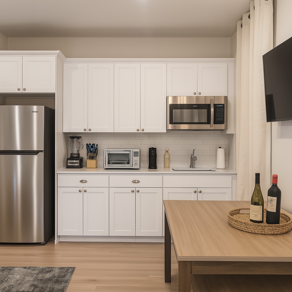Yiya kwindawo yethu epholileyo enebhedi enkulu entle nezinto ezinokusetyenziswa ezicingwe kakuhle ukuze uhlale kamnandi ixesha elide, kuquka umatshini wokutshayela. Phola nge-50’Roku TV, ebonisa simahla ilayibrari enkulu yemuvi okanye yomboniso weTV xa uyicelile. Ikhitshi elincinci linomphezulu wesitovu sombane kunye nento yokomisa umoya okanye ioveni, elungele ukutya okwenziwe ekhaya. Igumbi lethu elinomnyango ophumela ngaphandle linceda imini nobusuku, liqinisekisa ukuba kuza kuhlalwa lula. Yonwabela umtsalane weflethi yethu yabucala, eyenziwe kucingwa ngokuphumla kwakho.