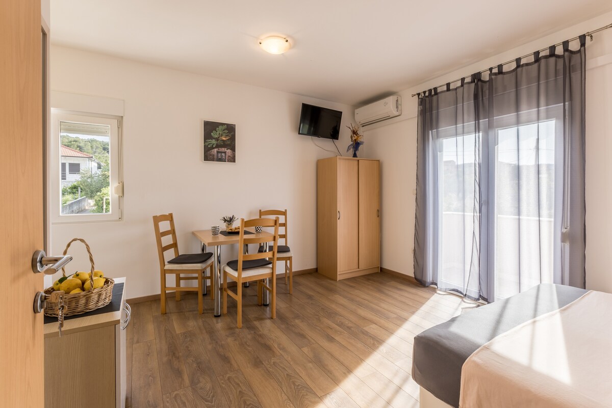 Iflethi yethu ekwicomplex isecaleni nje kolwandle. Olona lwandle lukufutshane yimizuzu eyi-2 kuphela uhamba ngeenyawo, ngoxa ulwandle lumalunga nemizuzu eyi-7 xa uhamba ngeenyawo. Umphakathi ulula kodwa uhle, kunye nembonakalo entle ukusuka kwithala le wich kukunika amava 'ohleli esikhepheni'. Unevenkile yokutyela entle kakhulu esebenza kude kube ngu-2 am, iivenkile ezimbalwa kunye nemithwalo yemivalo ye-caffe malunga. Imizuzu eyi-7 yokuhamba umgama, idolophu endala yaseSplit malunga nemizuzu eyi-15 ngemoto (okanye i-30 ngebhasi yasekuhlaleni)