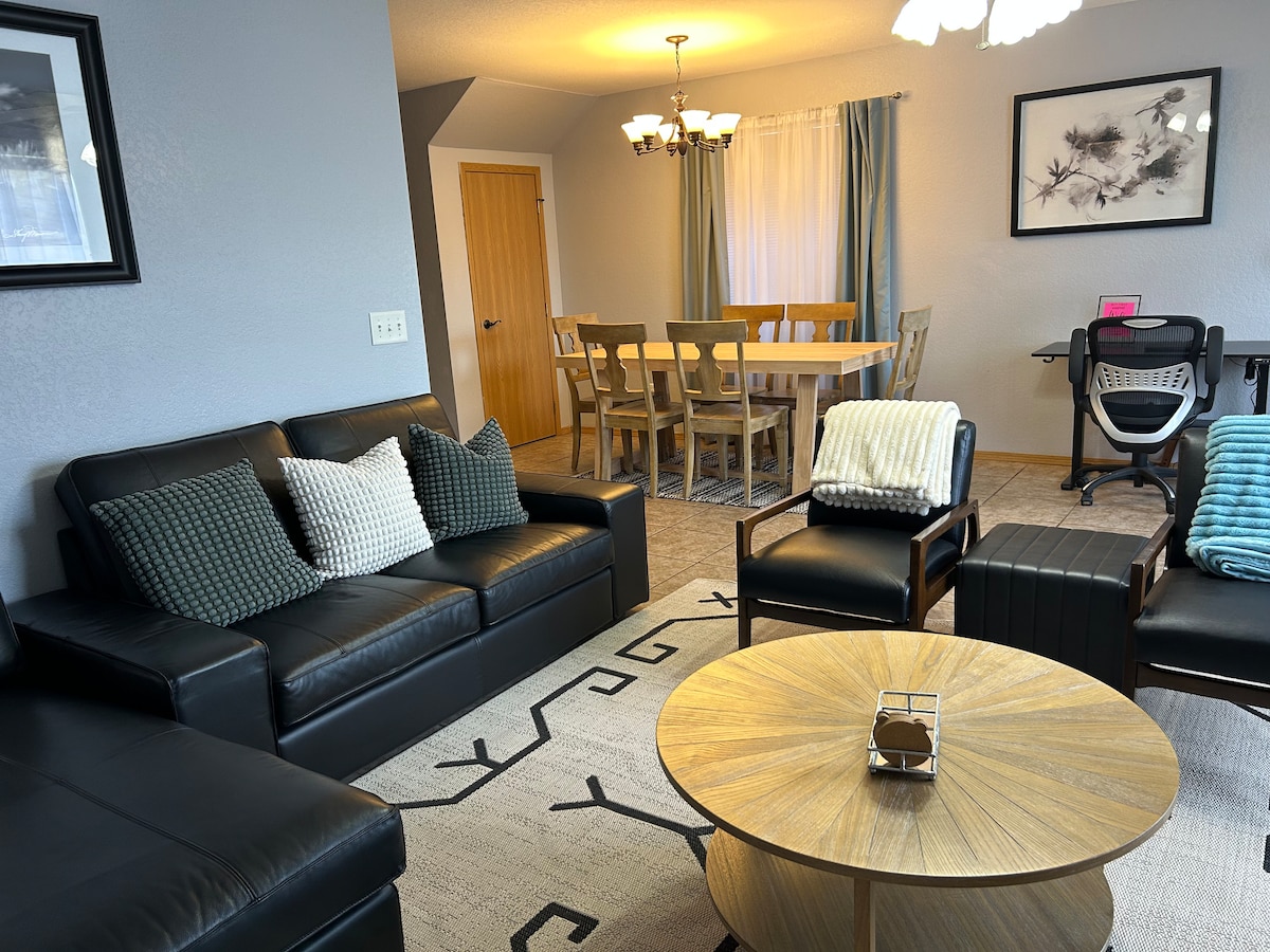 Yonwabela ukuhlala kamnandi kwigumbi lethu lokulala elisembindini elinamagumbi ayi-2, igumbi lokuhlambela eliyi-2! Le ndawo ilala ukuya kutsho kwiindwendwe eziyi-8 ezinekhitshi elipheleleyo nesofa enokutshintshwa. * I-intanethi ekhawuleza kakhulu eyi-1 yeGig! * Indawo yokubasa igesi etofotofo. * Itafile yokutyela itshintshela kwitafile yepuli netafile yeping pong! Bhukisha indawo yakho namhlanje!