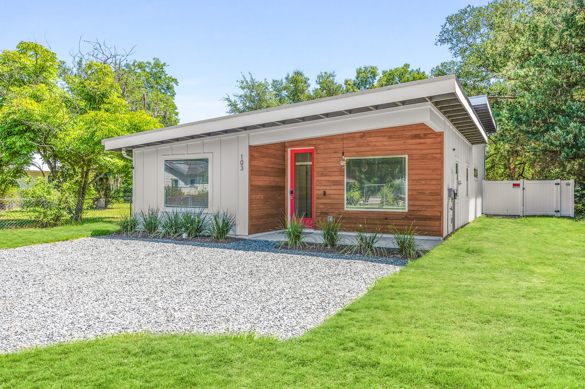 I-Sea-Glass Bungalow Tropical Peaceful Retreat. Bonke bamkelekile apha! Yiva ukuba izinto ezikuxhalabisayo ziyanyibilika njengoko umoya oshushu usenza igadi yabucala, wonwabele izinto ezikhethekileyo ezifana nokuxhoma ii-hammock neveranda ehloliweyo. Le ndawo ikhethekileyo inesitayile sayo. Izinto zobugcisa zibalaselisa le garaji itshintshiweyo ibe yi-studio yale mihla.. Xa ungaphumli kule ndawo itropiki, buka iLighthouse, iAlligator Farm & Bird Watching, i-White-Sand BCH, i-The AMP & DWTN yonke le nto < 1mi.