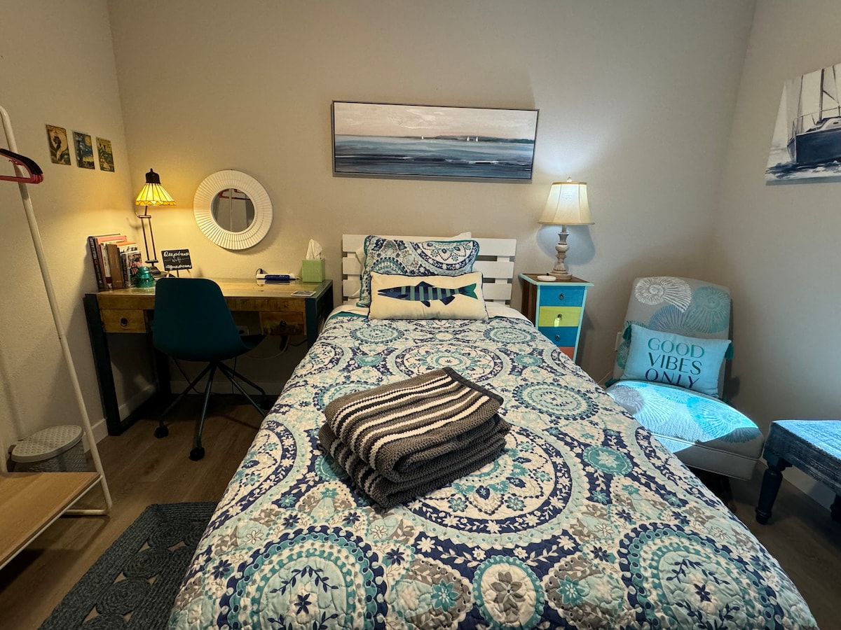 Igumbi elinomnyango ophumela ngaphandle elihle, elikwi-Anastasia Island kufutshane neSt Augustine Amphitheatre! Umgama wokuhamba ukuya eAnastasia State Park! Yonwabela ukuhlala kwisiqithi ngaphandle kwehotele. Sineebhayisekile zokuhamba elwandle ezinokusetyenziswa! Sisekude ngeemayile eziyi-1.5 ukusuka elunxwemeni loluntu kunye nokukhwela ibhayisekile kangangeemayile eziyi-3 ukuya eSt Augustine! Ezakutshanje ngobhubhane weCOVID-19: Siza kufafaza zonke iindawo eziqinileyo ngento yokunciphisa iintsholongwane evunywe yi-EPA ukuze senze konke okusemandleni ethu ukuqinisekisa ukuba iindawo zikhuselekile.