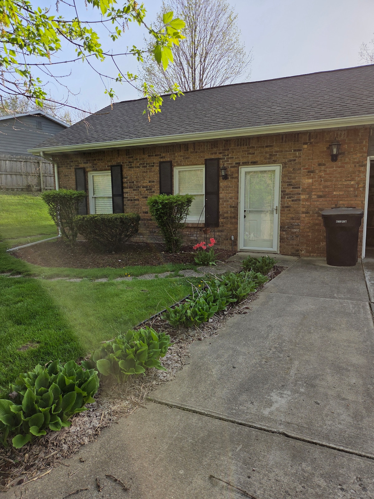 Hlala kwindawo yethu yonke ehlaziyiweyo kumgangatho ophezulu kunye nendawo yokungena yabucala edlulayo ukuze ize ihambe ngendlela othanda ngayo. Ibhedi enkulu kwigumbi lokulala eliphambili, igumbi lokulala lesibini. (Ii-cots eziyi-2 zinokulungiselelwa naluphi na ulutsha). Ibhafu epheleleyo enebhafu neshawa, igumbi leTV elineKuerig, i-microwave, i-frig encinci, kunye neplanga elingasemva. Phola kwiveranda engaphambili. Ukuhamba kancinci ukuya kwi-Fairgrounds kunye ne-Modkin Vine trail. Kufuphi ngeendawo zokutya. I-Notre Dame ikumgama wemizuzu eyi-45. Shipshewana -40 imizuzu. 60 miles to Lake MI. 3 hr drive ukuya eChicago.