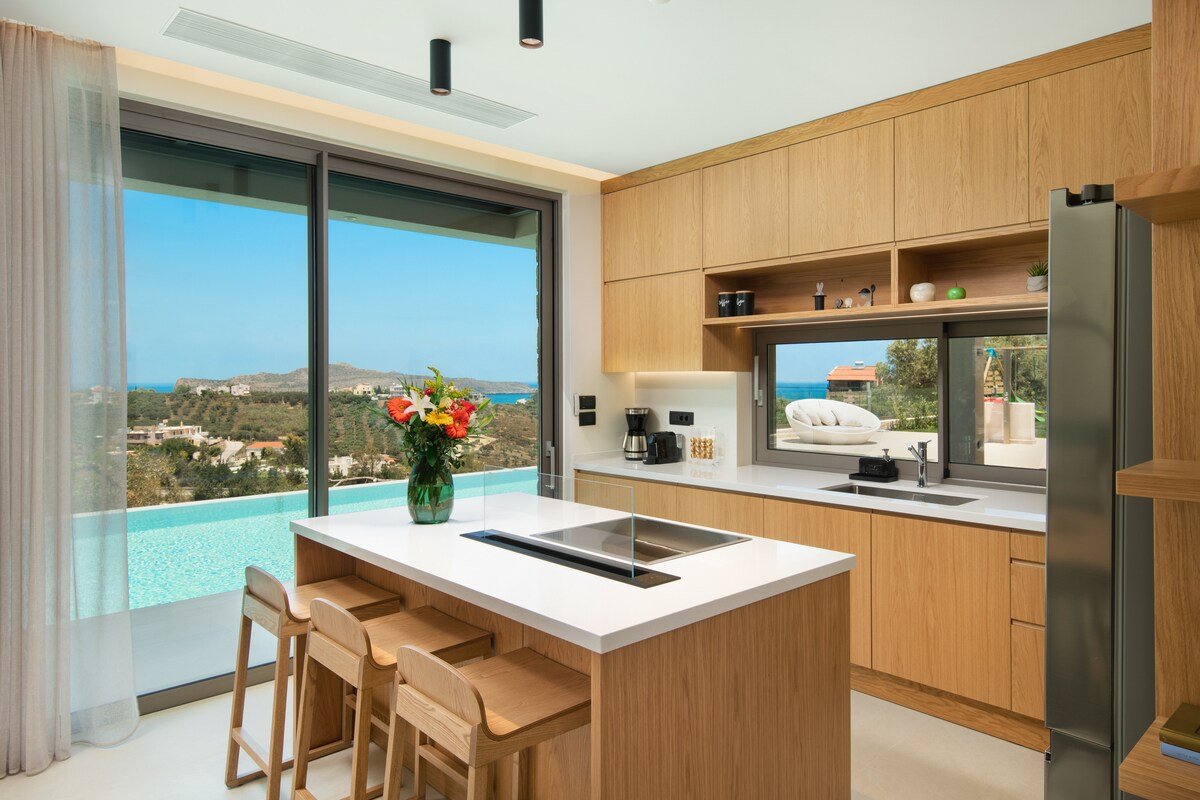 I-Reale yamkelwe yi-Greek Tourism Organisation kwaye ilawulwa "yi-etouri vacation rental management" 🏆I-Villa Reale iye yahluke nge-2025 Tourism Awards Bronze for Luxury Villa of the Year. I-Villa Reale, ekwindawo entle kakhulu ekufutshane nolwandle ngaphandle kweAgia Marina, eChania, yindawo yokuhlala eyakhiwe ngendlela yale mihla. Le ndlu enendawo eyi-420 m² inemigangatho emibini ibe inokuhlalisa iindwendwe eziyi-12 kumagumbi okulala ayi-6 anamagumbi okuhlambela.