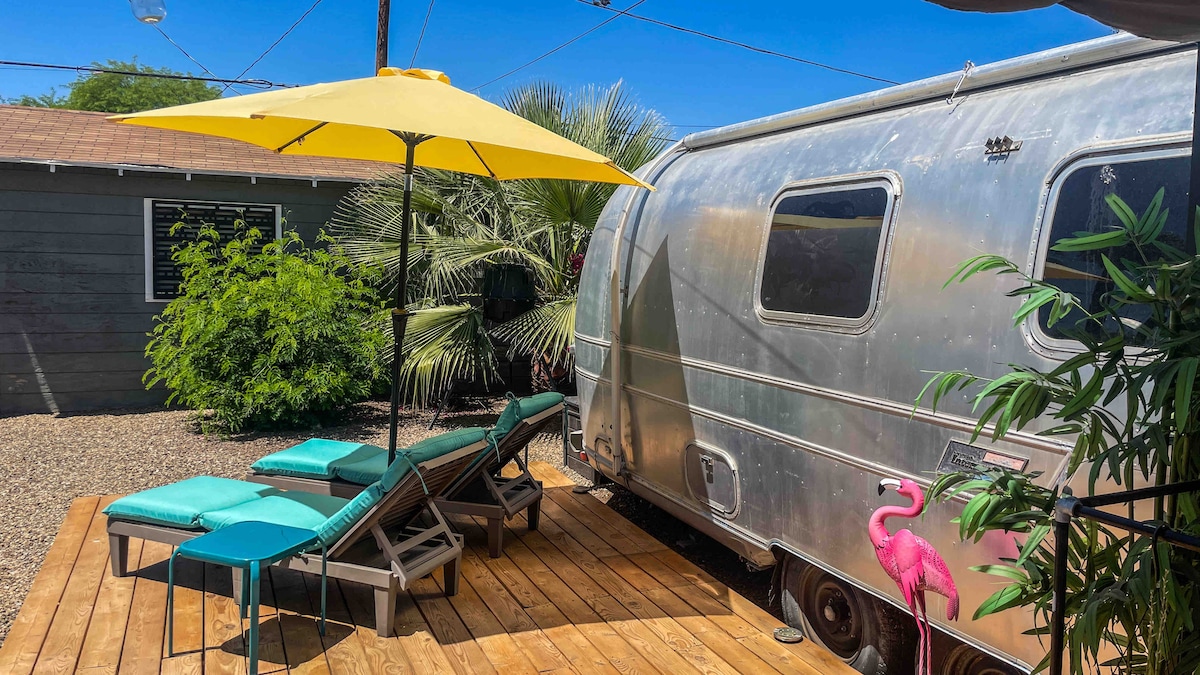 A beautifully restored vintage 1973 Airstream tucked in Phoenix's historic Coronado neighborhood. Named after someone special, Miss Vickie has been turning first-time guests into repeat visitors ever since. Full bed, 50" Roku TV with DirectTV and access to all your streaming apps, private deck, bar fully stocked, on us. 300 Mbps WiFi. No cleaning fees. No security deposit. Those are silly.