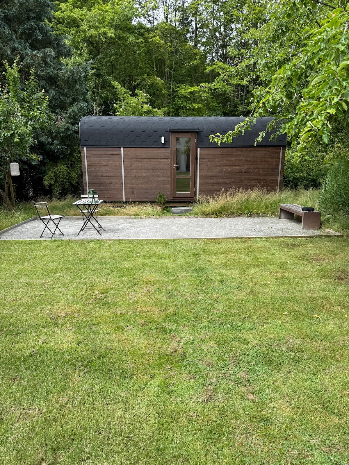 Hlala ungaphazamiseki embindini wendawo eluhlaza kunye neHans Broges Forest njengommelwane okufutshane, imizuzu embalwa uhamba ngeenyawo ukuya eBrabrand Lake entle, iindlela ezitofotofo kunye neenkundla zentenetya zasekuhlaleni. Kwangaxeshanye, uhamba nje imizuzu eyi-5 ukuya kweyi-10 ngeenyawo ukusuka kwizithuthi zikawonke-wonke kunye nemizuzu eyi-14 yokukhwela ibhasi ukusuka embindini weAarhus. Izinto esizinikelayo: * Indawo yokuhlala yabucala nethuleyo enendawo yabantu abayi-2 (ibhedi elala abantu ababini eyi-140x200) * Ikhitshi elinesitovu, ifriji, isinki netafile yokusonga * Indlu yangasese neshawa yakho wedwa * Ukufikelela kwibala le-petanque, umgodi wokubasa umlilo, iindawo zokuhlala phandle