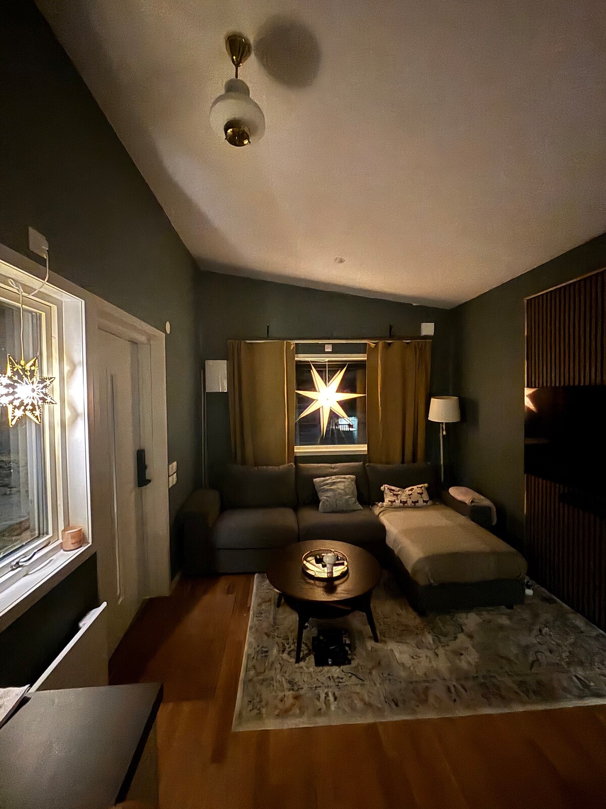 Ifumaneka kumgama ohamba ngeenyawo kuzo zombini iindawo zokutyibiliza ekhephini, isixeko ne-ICA Maxi le ndlu engasemva yeyona ndawo ifanelekileyo oza kuhlala kuyo e Östersund. Iibhedi ezintathu xa zizonke, ibhedi enobubanzi obuziisentimitha eziyi-120 kwigumbi lokulala nakwi-loft umatrasi omnye we-foam nebhedi enye eqhelekileyo yeesentimitha eziyi-90. Ikhitshi elisebenza kakuhle negumbi lokuhlala elitofotofo.