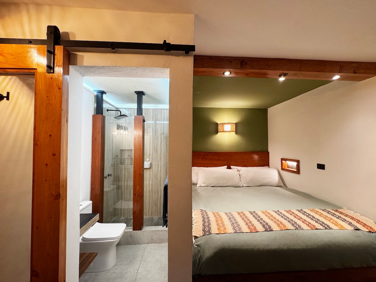 I-King Suite (#233) yinxalenye yeTekoa Spaces, eyihotele entle eseSan Antonio Palopo, eLake Atitlan, eGuatemala. Ikwilali ethe cwaka ekude nendawo ephithizelayo yeedolophu ezithandwa ngabakhenkethi, nto leyo eza kukwenza wonwabele ukuba nendawo yokuhlala eyiGuatemalan. Sinevenkile yekofu, esebenza ngekofu yaseGuatemalan ekuhlaleni, kunye nevenkile yokutyela epheleleyo evulekileyo yonke imihla ukususela ngo -7:30 kusasa ukuya kutsho ngo-6 emva kwemini. Eli gumbi lokulala libonisa kakuhle ichibi.