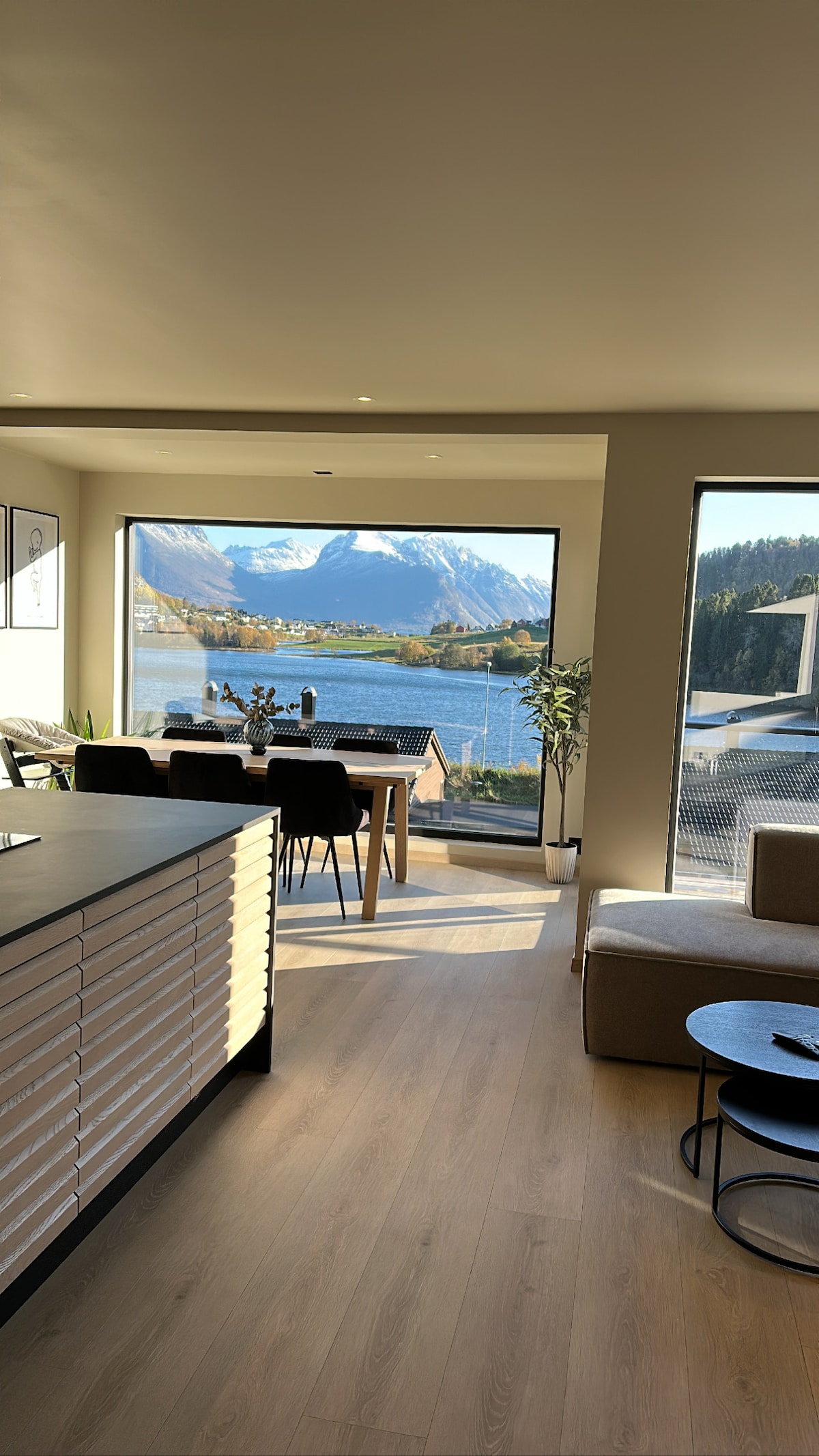 Indlu enendawo yokuphola enesikhephe ne-fjord