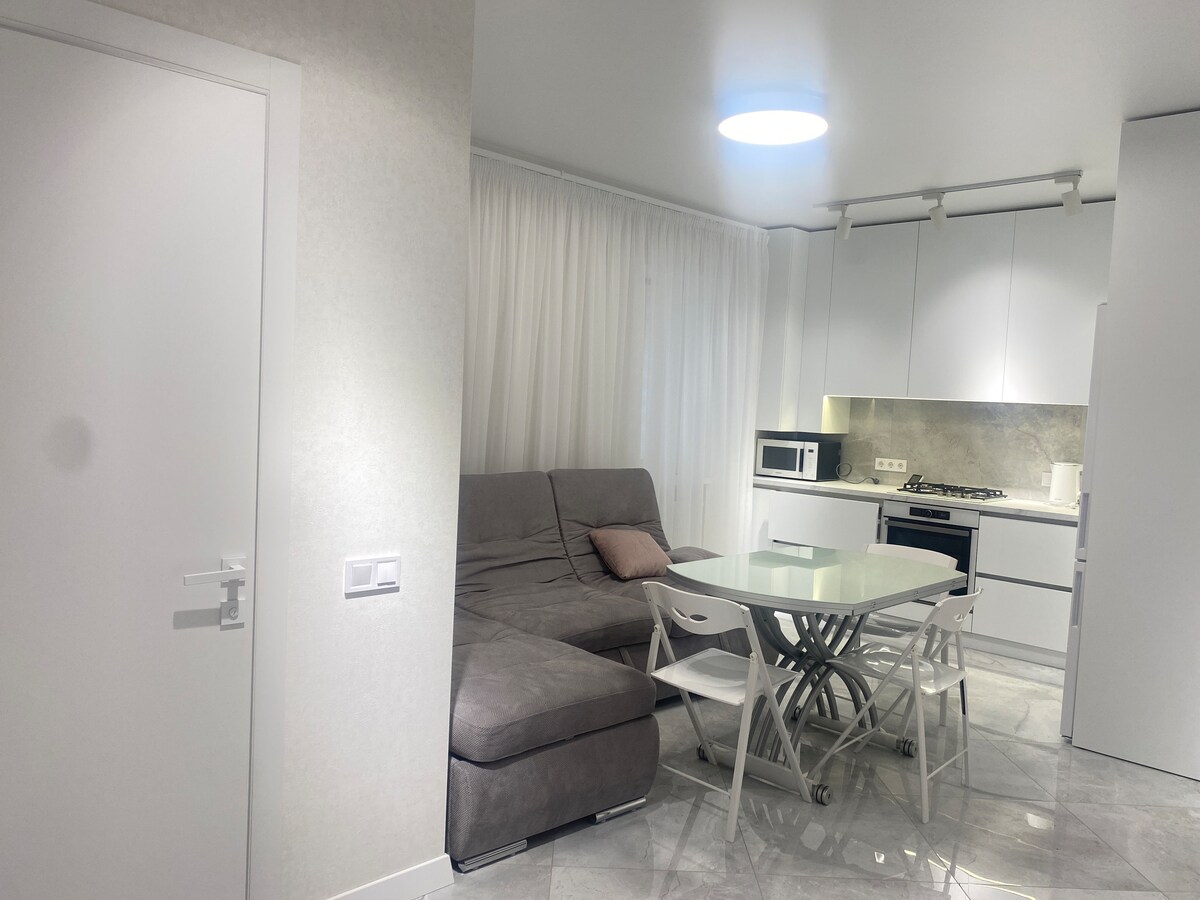 Iflethi okanye indlu ekwicomplex etofotofo kwisixeko esihle saseSumy. Ivulekile kwaye iqaqambile. Amagumbi amabini aneebhedi ezimbini. Ikhitshi elitsha elinento yonke oyifunayo. Ibhafu enomatshini wokuhlamba impahla nethobhi. Le flethi inokuthatha abantu abane nangaphezulu. Kukho indawo yokusebenzela nendawo yokuhlala. Le ndlu ikwindawo entle, kufutshane kukho ichibi elinendawo yepaki, indawo yezemidlalo, iindawo zokudlala, iikhemesti, iivenkile, indawo yokupaka eyadini.