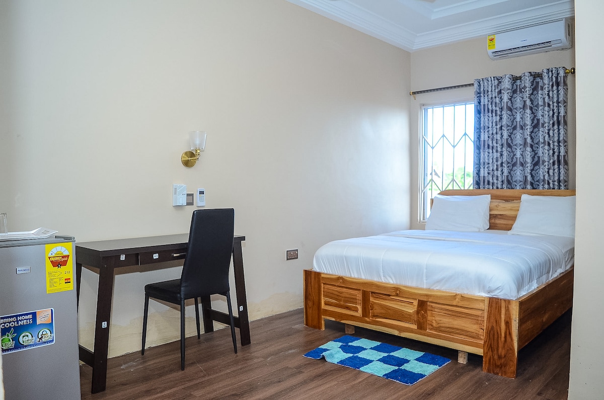 Escape to comfort at Blue Mirage located in Abesim, Sunyani. Perfect for couples, digital nomads, families, or travelers seeking a relaxing stay. Enjoy cool air conditioning, a private balcony, bar access, free parking, and outdoor seating for peaceful evenings. Whether you’re visiting for work or leisure, this stylish retreat offers the perfect blend of comfort, convenience, and local charm.