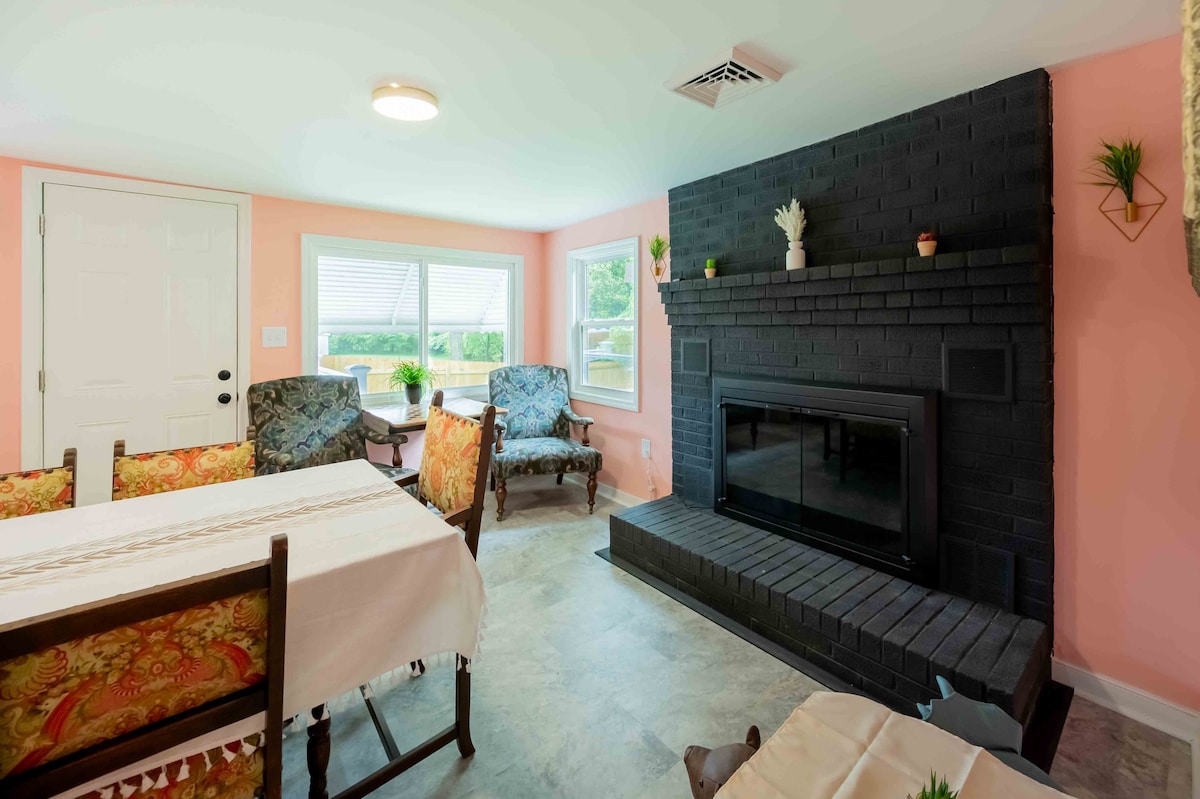 Ngeli xesha lobunzima behlabathi, sinqwenela ukuqinisekisa zonke iindwendwe ukuba silandela amacebiso e-CDC ukuze siphephe ukusasazeka kweCOVID-19. Sicoca zonke iindawo ezikwindlu yethu ngokubulala iintsholongwane, izinto zokondlula ibhedi ngeClorox, size sinike iindwendwe zethu isepha yezandla ebulala iintsholongwane. Kufuphi nokuthenga kunye neevenkile zokutyela kunye nenkonzo yokukhupha. Indawo ephandle eyaneleyo enomgodi womlilo, indawo yokoja, umgangatho neveranda egqunyiweyo. Inkonzo ye-intanethi ekhawulezayo, kukho i-smart tv edibene ne-antenna.