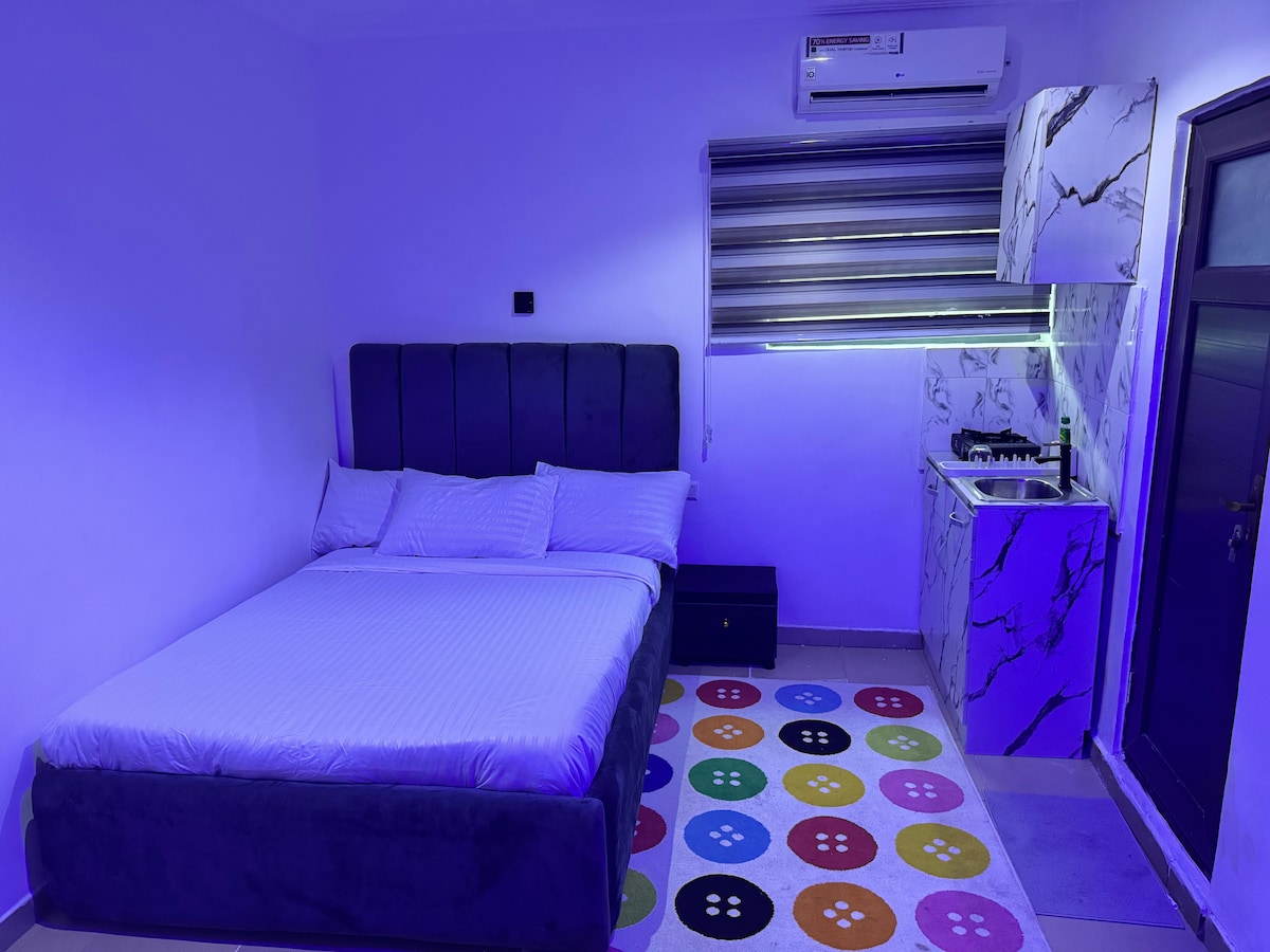 Khusela ubumelwane nje nge-25mins ukuya kwindawo esembindini yezoshishino ye-lagos ekuthiwa yi-lagos Island. Indawo yokupaka ekhuselekileyo. Isakhiwo esitsha sezakhiwo esine-WiFi ekhawulezayo. Ikhitshi elincinci elipheleleyo elinazo zonke izinto eziyimfuneko. Amandla angama-24hour (i-inverter kunye ne-generator).