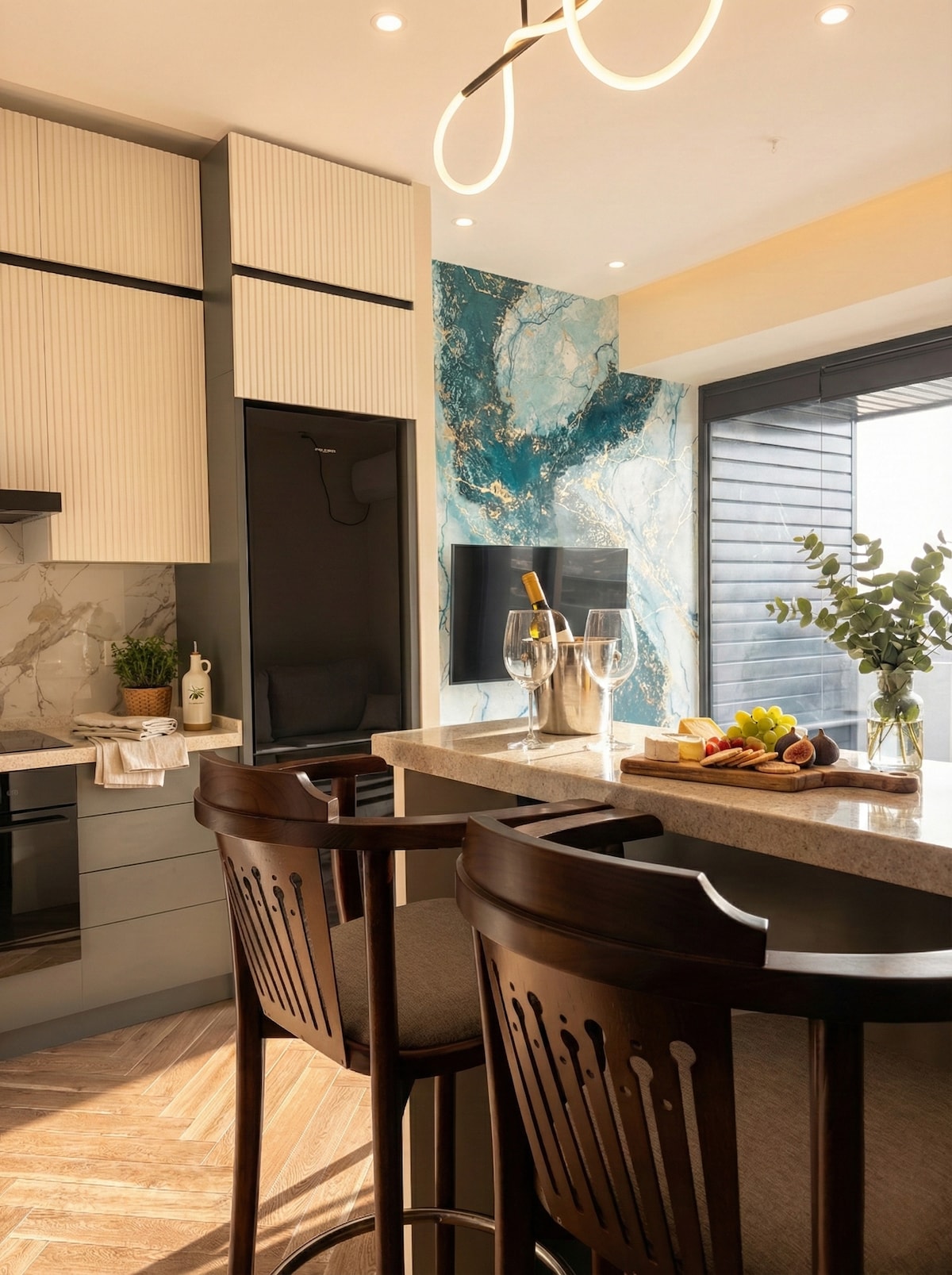 Welcome to a bright and elegant 75 sqm apartment in the heart of Tashkent, located in Akay City, featuring high ceilings, panoramic windows, and 24/7 security. The open-plan layout offers a stylish living room with a Smart TV and Netflix, a fully equipped kitchen, unique wooden furniture, underfloor heating, and filtered drinking water for your comfort. I’ll be happy to assist with the registration process at your expense, ensuring a smooth and pleasant stay.