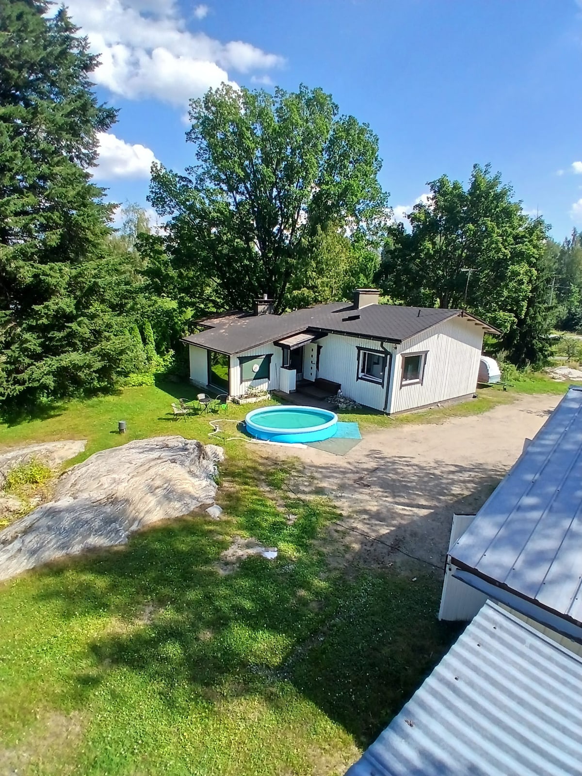 Le ndawo ikhethekileyo nepholileyo yenza kube lula ukuphumla. Indlu esemaphandleni encinci yakutshanje enebhafu yamanzi ashushu yangaphandle, indawo yokutyela nento yokosa emgangathweni. Ulwandle lwabucala. Iifestile ezinkulu ukuya eLake Saimaa. IHaapavuori inyuka emva kwendlu esemaphandleni. Uxolo lwendalo nokuzola onokukonwabela apha. Izitepsi eziya elwandle nokuqubha zinokufikelelwa unyaka wonke ukusuka edokisini. Indlu yangasese neshawa. I-sup board, i-kayak nesikhephe sokukhwela nazo ziqukiwe. Indlu yam isecaleni kwendlu yamaplanga. Kodwa ke, uza kuba noxolo nobumfihlo bakho.