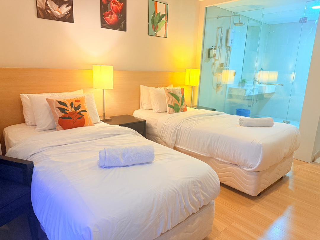 Igumbi lokuhlambela elineglasi elineBhedi Ezimbini Ezincinci | 200m ecaleni kweMall