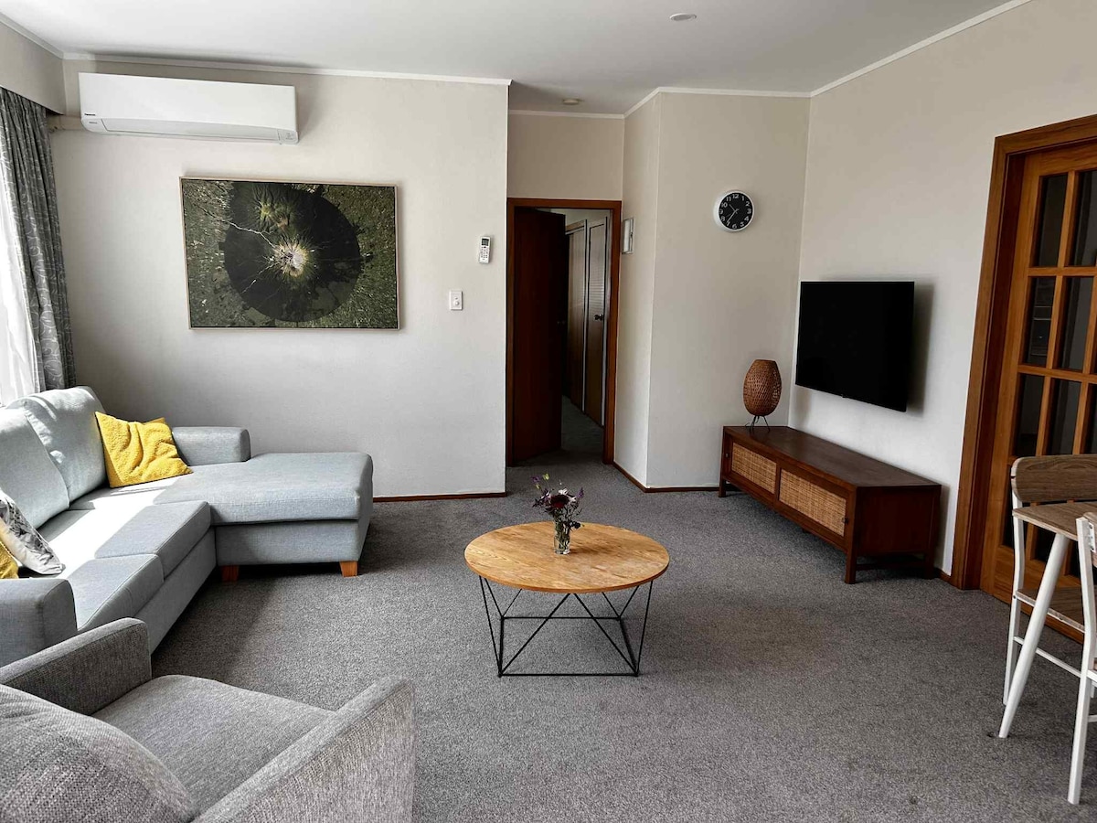 Ikhaya elihle le-charector elineentaba zakho zabucala. Ifumaneka kwidolophu ethe cwaka yase Fitzroy yaseNew Plymouth, le ndlu imangalisayo iqoqoshiwe kukuhamba nje kancinci ukusuka kwibhulorho yeTe rewa rewa, ulwandle, iLake Rotomanu, indawo yokuhamba engaselunxwemeni yaseNew Plymouth kunye neziko lokuthenga laseValley. Umgama wokuhamba ngeenyawo ukusuka kwiivenkile neevenkile zokutyela zase Fitzroy kunye ne-3km kuphela ukusuka kwiNew plymouth City Centre. Sine-wi-fi ekhawulezayo, i-65" tv kwindawo yokuphumla, indawo yokupaka esitratweni yasimahla kunye neentaba ezintle ngaphakathi endlini.
