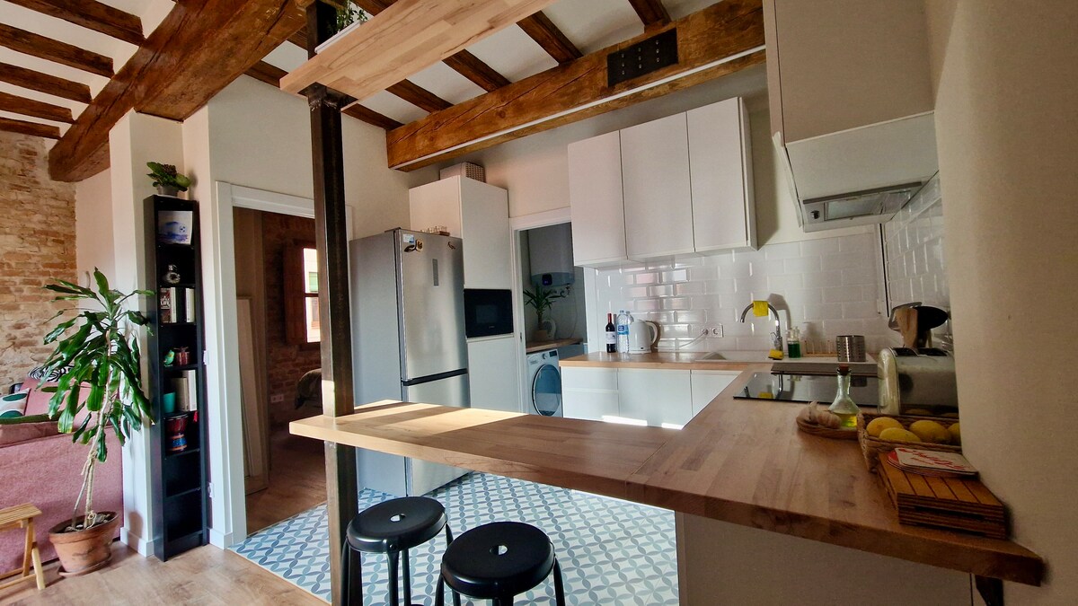 I-Loft entle kwiziko lembali laseTarragona, kufutshane neCathedral kunye nezona ndawo zintle zembali yekomkhulu lakudala laseRoma. Kwi-convent yangaphambili kwaye ibekwe kumgangatho ophezulu kunye nesinyusi esincinci, i-loft ithe cwaka kwaye ilungele ukuqhuba i-teleworking (i-intanethi ekhawulezayo ye-fiber). Imizuzu nje embalwa uhamba ngeenyawo usiya kwi-Miraracle Beach, uze udityaniswe ngebhasi ukuya kumanxweme amahle esixekweni. Iivenkile zasekuhlaleni, iivenkile zokutyela kunye neebhari, iimyuziyam... ukukhanya kwelanga, yonke into ikhona!!!