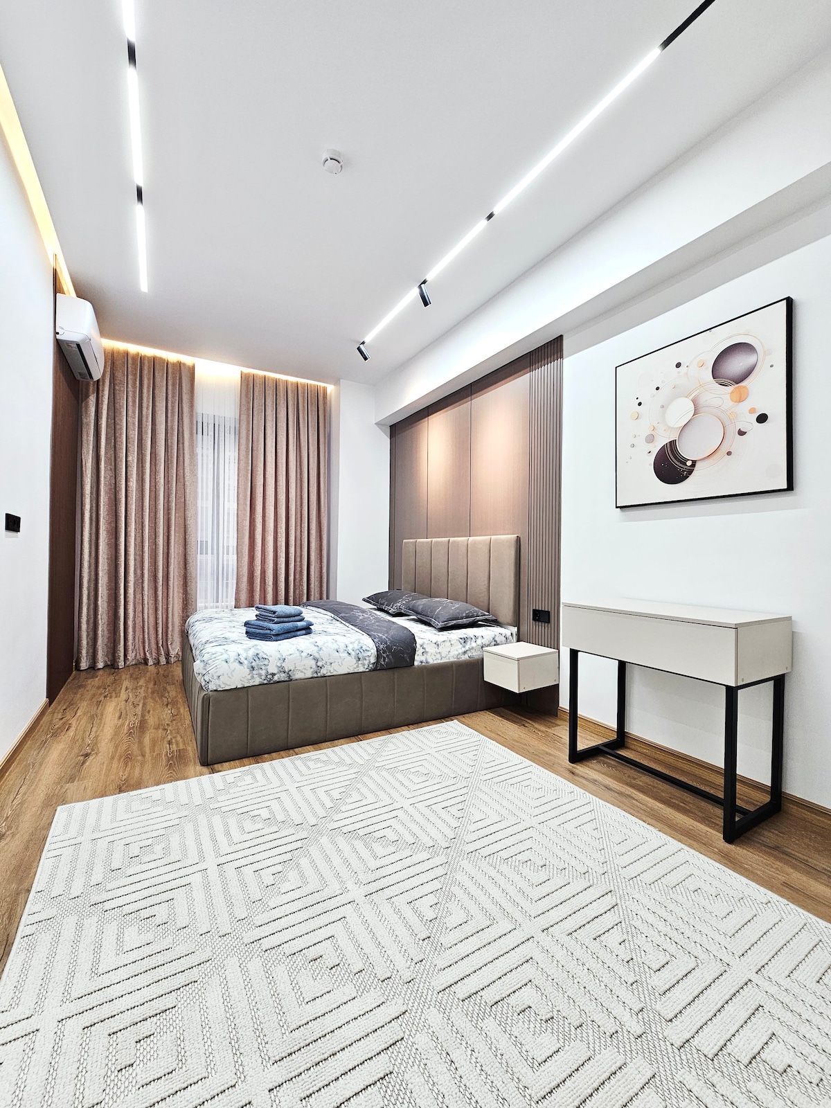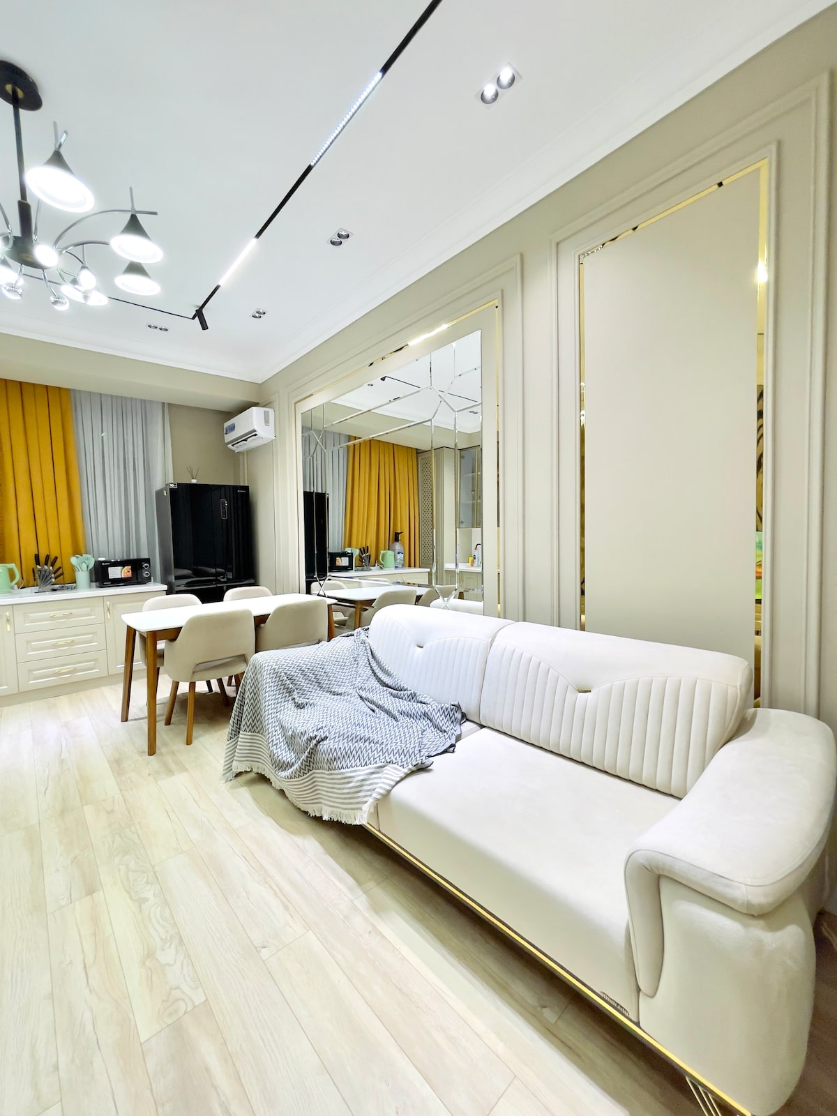 The perfect sleek and designer apartment for you, fully furnished and located in the heart of Tashkent. Whether you need to work, socialize, or enjoy numerous festivals, this space is fully equipped and uniquely located in the Tashkent City Park. Comfortable, bright, minimalist, and ready to move in. Welcome home!
