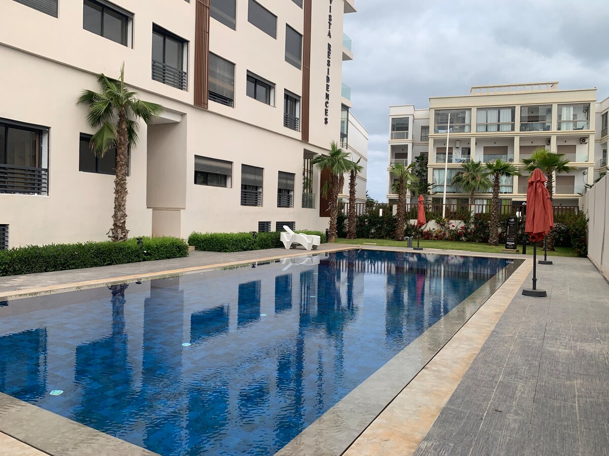 Beau Rez de jardin,,au sein du complexe balnéaire Bahia Golfe Beach ,comprenant 3 chambres,salon spacieux climatisé,2sdb,cuisine bien équipée,toute les pièces donnent sur jardin et terrasse offrant fraîcheur et ambiance chaleureuse au logement . Fibre optique.2 bicyclettes à votre disposition.parking . Une piscine disponible toute l année . Accès direct à la mer, une corniche aménagée de 3km , plage privée,hôtel Vichy,Golf club House MARJANE à proximité même des livreurs Glovo Mc Do sont dispo