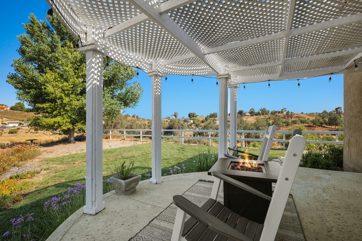 Wamkelekile Kwindlu esemaphandleni eseMira Bella Ranch! Hlala phantsi uze wonwabele ukubuka iindawo ezintle zeTemecula Wine County ukusuka kwindlu engasemva kule ndawo ikwiihektare eziyi-10, ngaphandle kombane, kwifama yentsapho. Ifumaneka kwiimayile eziyi-0.8-1.5 ukusuka kwezona ndawo zithandwayo zewayini kwiDe Portola Wine Trail. Kwakhona kumgama weemayile eziyi-10 ukusuka kwidolophu yakudala iTemecula, iPechanga, iVail Lake neLake Skinner. Yonwabela bonke ubuhle nokuzola kokuhlala emaphandleni ngaphandle kokuncama izinto ezilula.