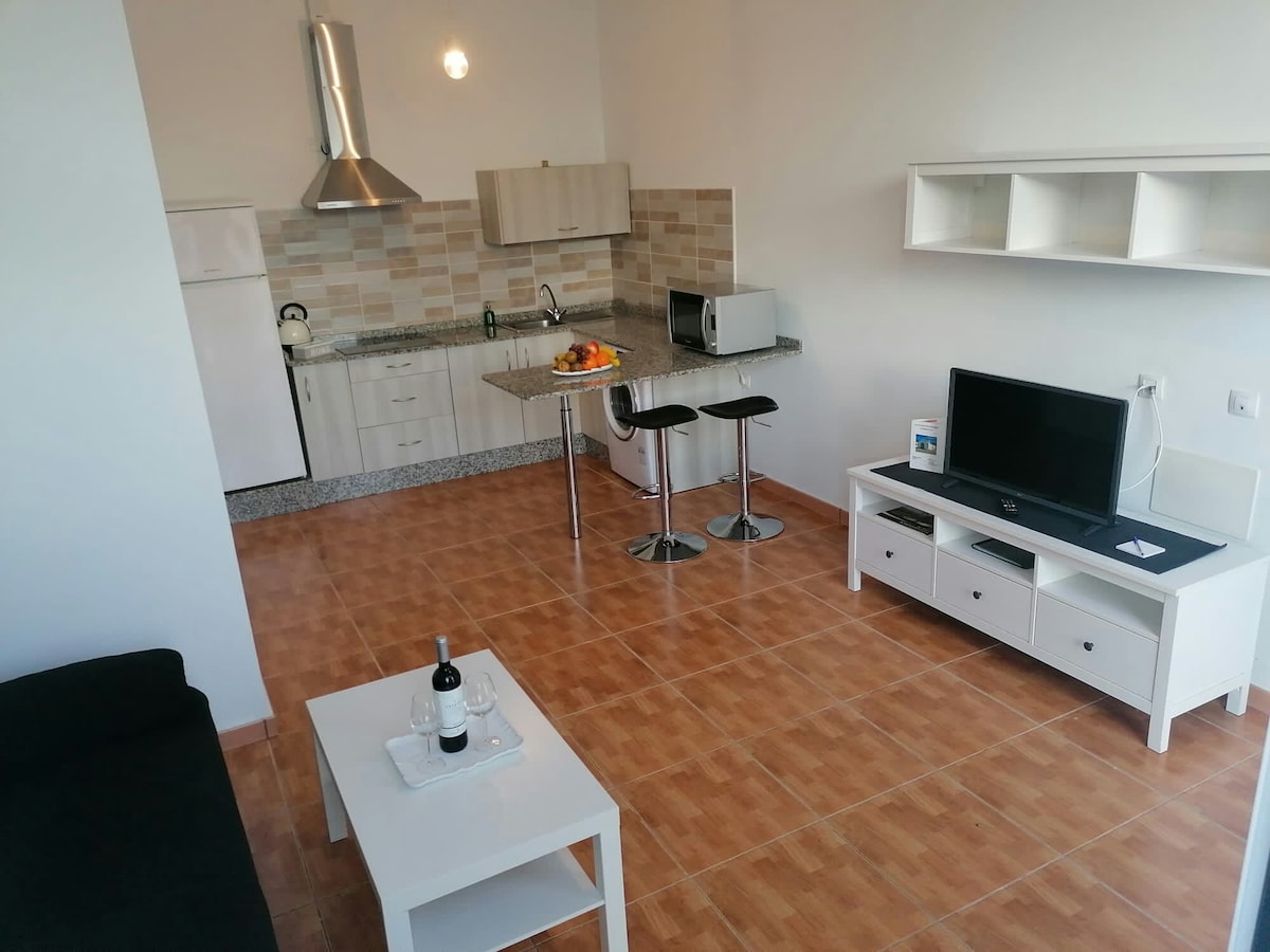 Acogedor estudio con cama alta desde donde disfrutar de vistas al mar y al horizonte. Dispone de cocina equipada, baño con ducha, salón y una terraza privada con vistas panorámicas al océano. La terraza es perfecta para relajarse en las hamacas, disfrutar del paisaje o contemplar los espectaculares atardeceres de la costa oeste de Fuerteventura. También podrás disfrutar de una bañera exterior para relajarte al aire libre.