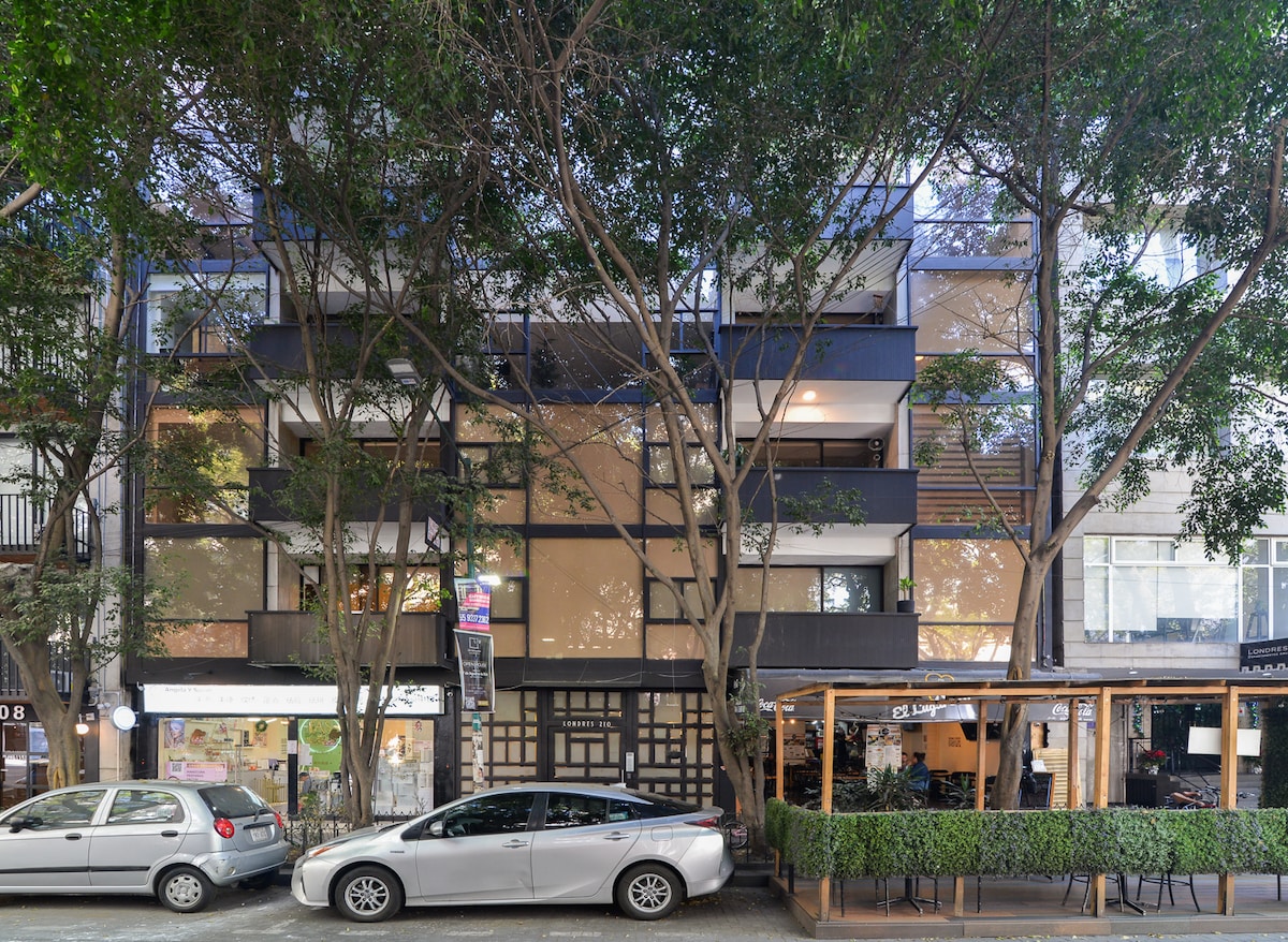Igumbi lokuqala lokulala linebhedi elala abantu ababini, idesika newardrobe; igumbi lokulala lesibini linomatshini okhupha umoya obandayo okanye oshushu, ibhedi enkulu newardrobe. Ikhitshi negumbi lokuhlala, elakhiwe ngendlela yaseAsia ibe linezinto zokubraya, ifriji ne-microwave, zijikelezwe yi-terrace enkulu. Ikumgangatho wesithathu wesakhiwo sasePorfirian esilungiswe kakuhle eRoma Norte. Ifikelelwa ngezitepsi ezifihlakeleyo ezikhokelela ekubeni kubekho ukuzola. Ngaphakathi kukho amagumbi okulala amabini negumbi lokuhlambela elinezinto zonke.