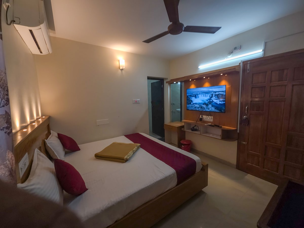 Experience a comfortable and affordable stay in our Standard Double Room, designed for travellers seeking convenience, cleanliness, and value. The room features a cozy double bed, air-conditioning, free Wi-Fi, an LED TV, and a clean attached bathroom with 24/7 hot water. Ideal for couples, solo travellers, and business guests looking for budget-friendly and comfortable accommodation