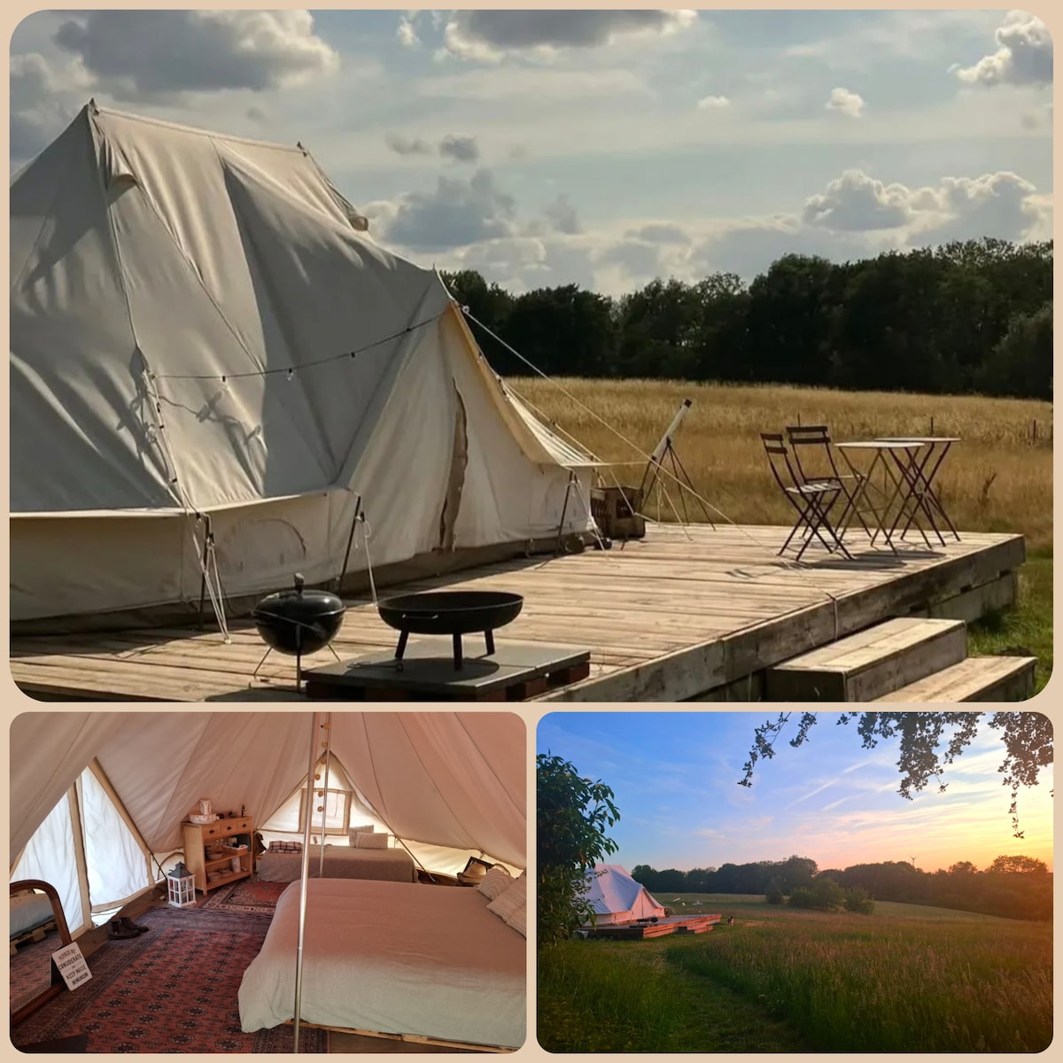 Tente glamping sur le thème des EXPLORATEURS au cœur de la nature attenant à la "Ferme de la Chevêche" - à 15 min de Namur, portes des Ardennes. Atmosphère cocoon et romantique, parfaite pour les couples, avec la possibilité de loger 4 personnes. Brasero + BBQ + poêle à bois de mi octobre à mi avril. Toilette sèche à 5 mètres de la tente. Pour se laver: cruche d'eau et bassine à l'ancienne. Vue imprenable et couchers de soleil incroyables!