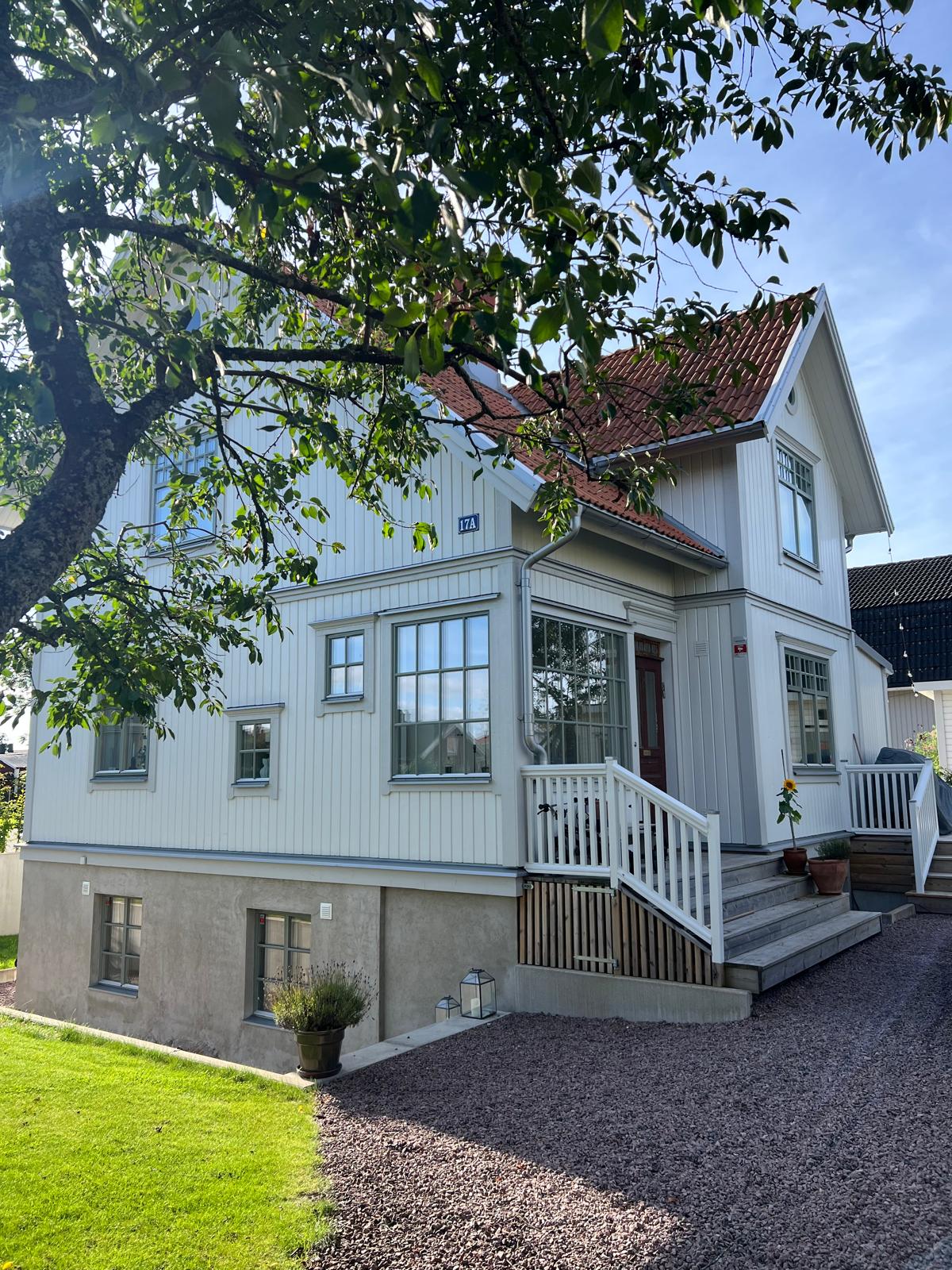 Här kombineras närheten till stadens utbud med rofylld villaidyll. Den charmiga villan i 50-talsstil ligger i ett lugnt område strax utanför centrum. Här bor ni bekvämt med gott om plats för både familjer, vänner och arbetsresenärer som vill ha ett praktiskt boende nära stan. Tomten är lummig och grönskande, med en altan i soligt söderläge. För barn finns gräsytor att leka på. Ni bor nära både Vänerns vatten (450 m) och resecentrum (1,6 km).”