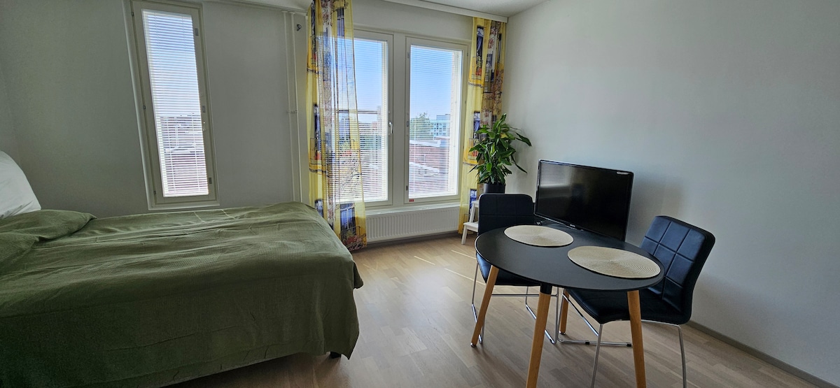 Iflethi entsha enendawo entle eTikkurila. Kuphela iimitha eziyi-250 ukusuka kwisikhululo sikaloliwe saseTikkurila. Qeqesha uxhulumaniso imizuzu eli-15 ukuya kwiziko Helsinki kunye 10 imizuzu ukuya kwisikhululo seenqwelo-moya. Ijikelezwe ziivenkile ezinkulu, iivenkile zekofu, iivenkile zokutyela njl. I-Wi-Fi yasimahla. Umatshini wokwenza ikofu we-Capsule onekofu esimahla. Ikhitshi elinezinto zonke. Izibane ezinokuncitshiswa. Isitudiyo sale mihla nesitayile esinayo yonke into oyidingayo.