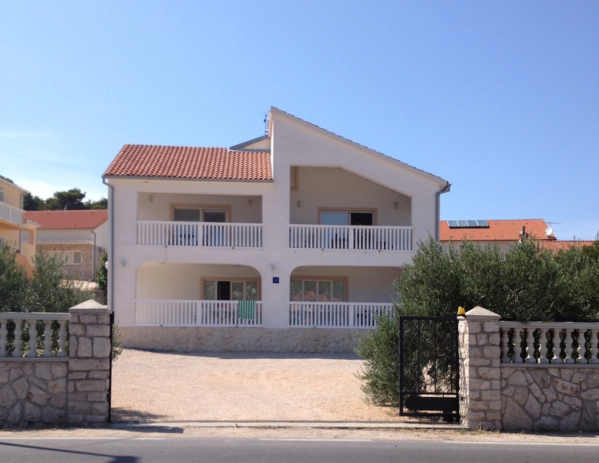 Yonwabela ukubona iidigri eziyi-180 phezu kweMurter, iBetina neKornati Islands kunye nebhalkhoni yabucala eyi-15 m2. Ukuhonjiswa kwale mihla nokuhonjiswe kakuhle yeyona ndlela ifanelekileyo yeeholide zekhaya lakho. Iwardrobe edityanisiweyo, ishawa yokungena, iiphaneli zokumangalela nekhitshi elinezixhobo zendlu ziza kukushiya unexesha elaneleyo lokonwabela indawo etshintshayo ngeglasi yewayini ! Iindawo zokupaka iimoto eziyi-2 namathuba okubiza nokugcina isikuta sakho sombane okanye i-stroller yosana.