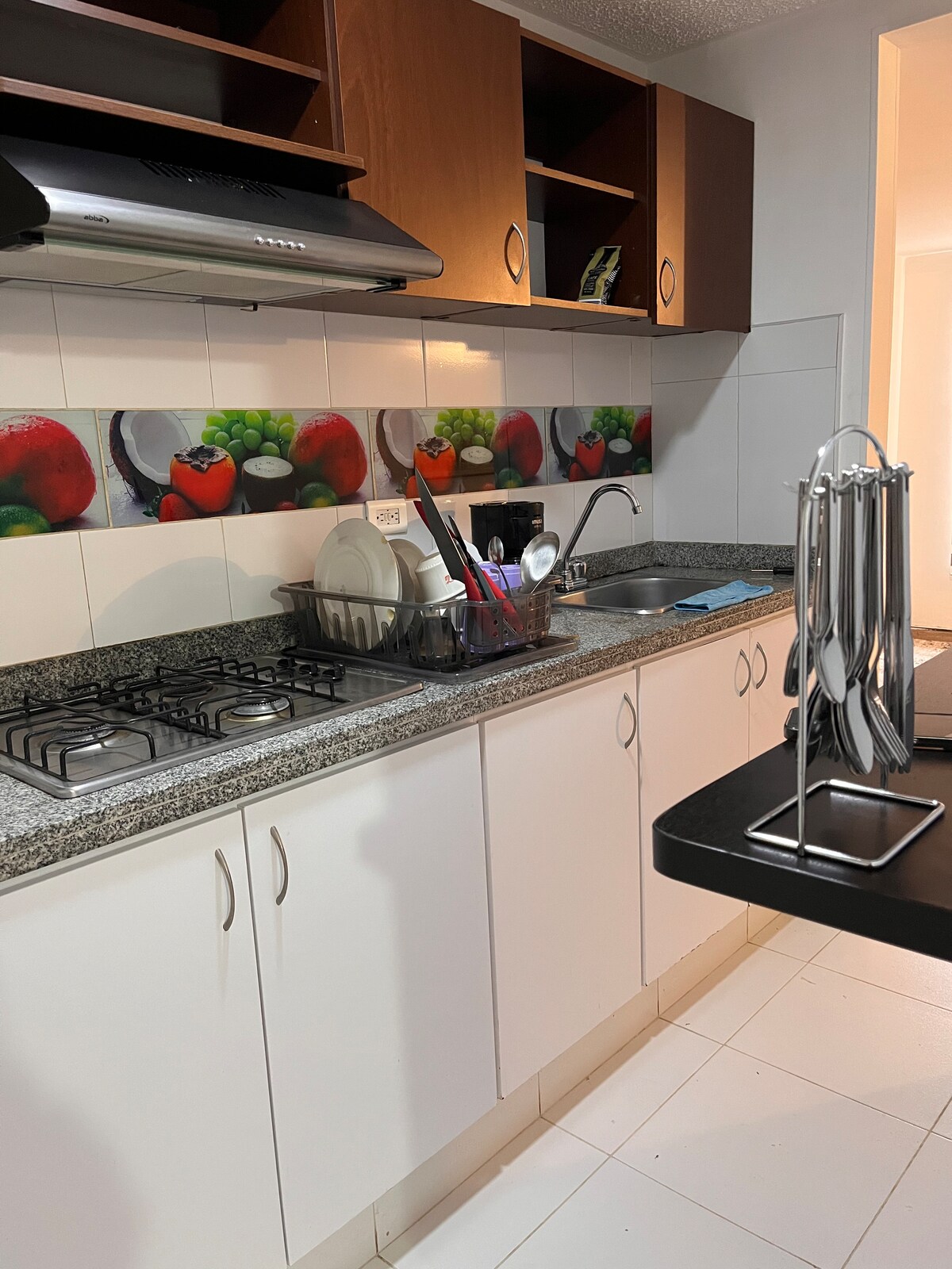 Intsapho yakho iza kuba kufutshane kuyo yonke into xa uhlala kule ndawo yokuhlala isembindini. Indawo yakho yokwexeshana eTocancipá iquka: Amagumbi ayi-3: • Igumbi lokulala eliphambili elinebhedi ezimbini, iTV negumbi lokuhlambela labucala • Igumbi lokulala lesibini elineebhedi ezilala umntu omnye eziyi-2 • Igumbi lokulala lesithathu elineebhedi ezimbini nedesika yomsebenzi Igumbi lokutyela elitofotofo nelinendawo evulekileyo: • Ibhedi enesofa yohlobo lwe-L elungele ukuphumla okanye ukulala • i-TV ne-intanethi • Itafile yokutyela yabantu abayi-4 Ikhitshi elinezinto zonke.