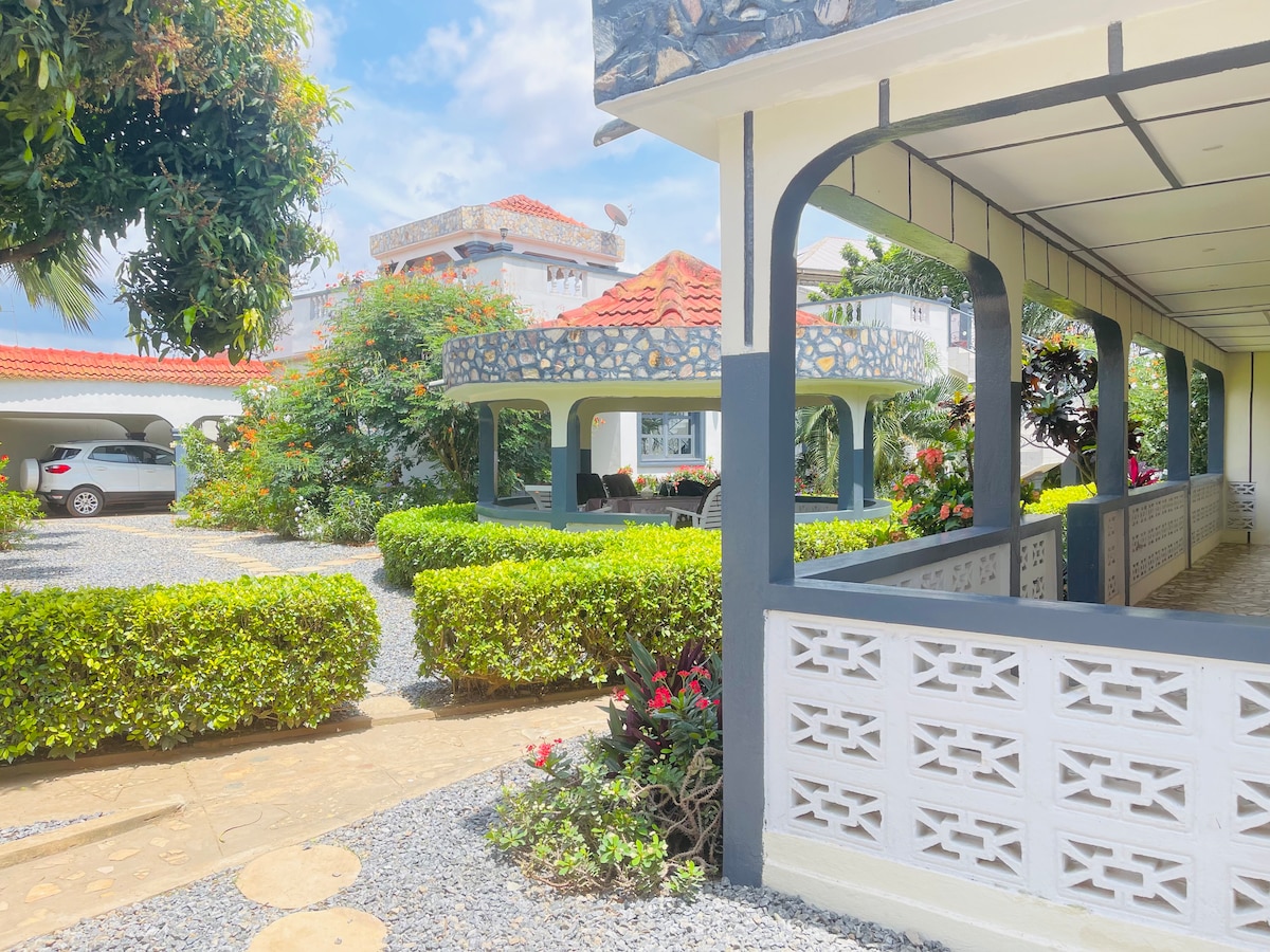 Wamkelekile kwiflethi yethu eneebhedi eziyi-2 eAttkoumé, eLomé. Umoya weSerene phakathi kweendawo ezintle ezijikelezileyo. Indawo ekufuphi nezinto ezinokusetyenziswa ezikufutshane, indawo yokulawula, nendlela eya eKpalimé. Ukhuseleko luqinisekisiwe ngokhuseleko olufumaneka imini nobusuku kunye nekhamera. Igumbi lokuhlala elitofotofo elineTV ne-Netflix. Yonwabela isidlo sakusasa okanye ukubuka isixeko kwibhalkhoni. Amagumbi okulala ahonjiswe kakuhle ukuze ulale kamnandi. Amagumbi amabini okuhlambela ukuze kube lula kwaye ayimfihlo. Iholide yakho efanelekileyo ye-Lomé! Bhukisha ngoku ukuze uhlale ixesha elingalibalekiyo.