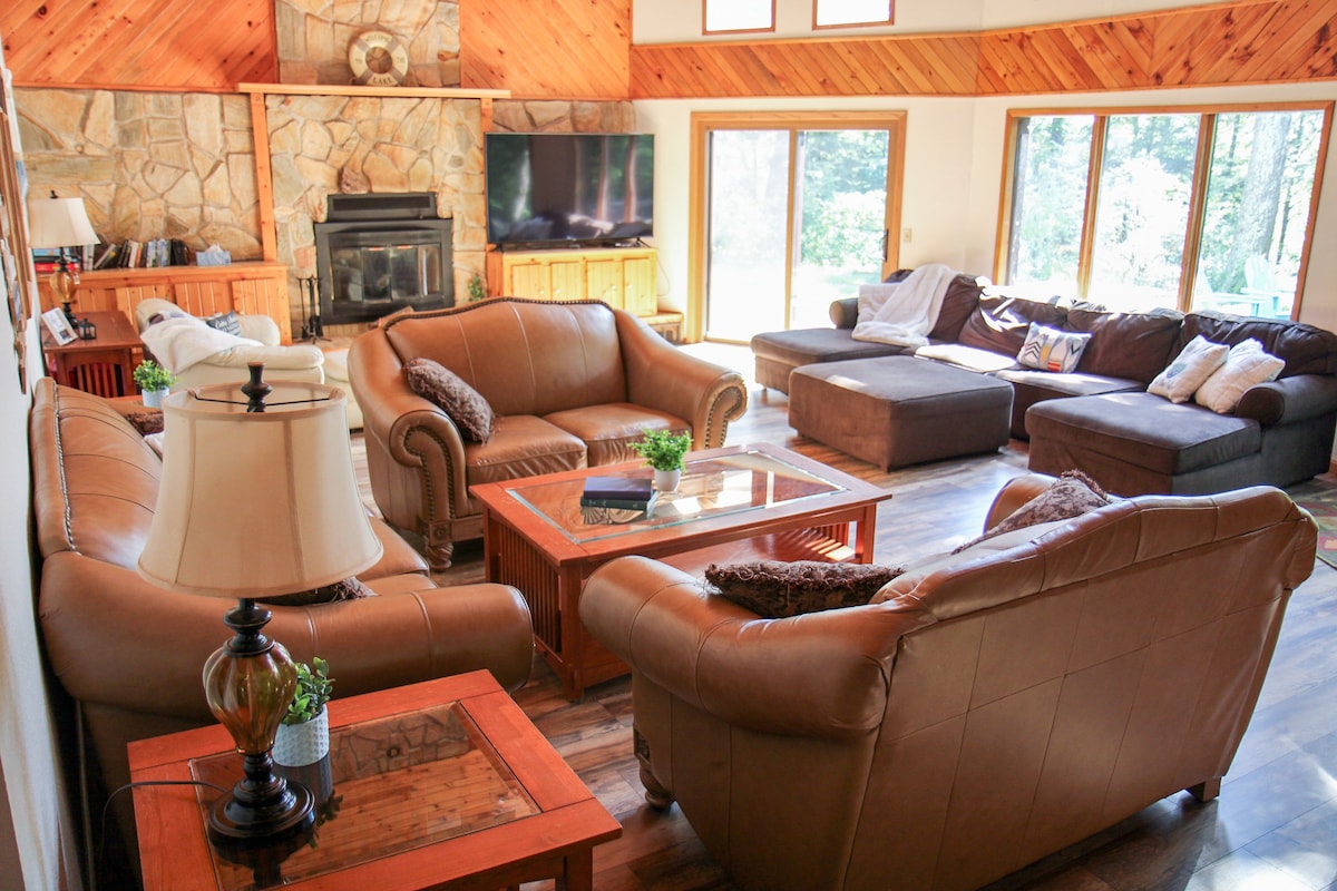 Siyakwamkela ukuba uhlale kwi-High Falls Riverfront Retreat entle kuphela i-30 ft ukusuka emanzini. Indlu yamaplanga ilala amagumbi okulala ayi-6 w/ 2, ibhafu eyi-1 nekhitshi elikhulu elivulekileyo/igumbi lokuhlala. Ineloft entle yabantwana okanye iindwendwe ezongezelelekileyo. Inegumbi elihle lelanga, imidlalo kunye neemuvi. Inefenitshala epheleleyo kuquka izinto ezifunekayo ekusenokwenzeka ukuba ushiye ekhaya. Ngaphandle kukho indawo yokoja, umngxuma womlilo kunye nomlambo omhle w/ kayaks. Ebusika yiparadesi ye-Snowmobilers & hikers! Kanye kwiindlela ze-UTV/ze-snowmobile!