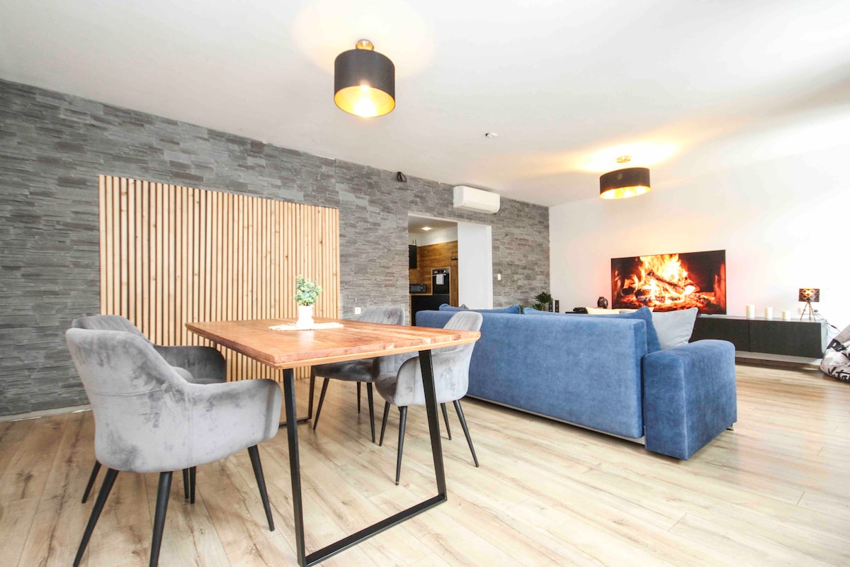 Iflethi okanye indlu ekwicomplex yale mihla eTrenčín – ukuba tofotofo, ukuba wedwa nendawo entle! Yonwabela ukuhlala kwakho malunga nekhilomitha eyi-1 kuphela ukusuka embindini weTrenčín, eyona ndawo iphambili eqala eMierov Square ngqo phantsi kweNqaba yaseTrenčín edumileyo. Ilungele abantu abadala abayi-2 nabantwana abayi-1 ukuya kwabayi-2. Amagumbi ✔ ayi-2 (igumbi lokulala eliyi-1 elinebhedi enkulu elala abantu ababini negumbi lokuhlala eliyi-1 elinesofa nekhitshi elikhulu elikumgangatho ophezulu elinezixhobo zombane, igumbi lokuhlambela elikhulu eliyi-1 elinethoyilethi Indawo yokupaka ebhukishiweyo yabucala ISIMAHLA kanye kanye kwindawo yokungena.