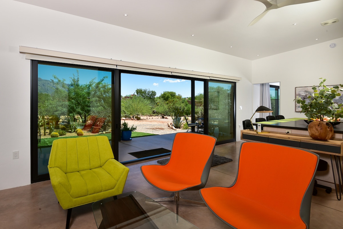 Hlaziya kwindawo ekuphela kwayo kwingingqi ebonisa iindawo ezingaphazanyiswanga kwiintaba zaseCathalina nakwisixeko sonke saseTucson! Le ndawo inendawo yokuhlala engayonakalisiyo indalo, enonxibelelwano olupheleleyo lwangaphakathi okanye lwangaphandle, ipuli yokuqubha, ibhafu enamanzi ashushu nezinto eziyimfihlo ezimangalisayo! Indawo ekhanyayo, enomoya inendawo yokuhlala evulekileyo neefestile ezinkulu ukuze kubonakale iindawo ezintle. Yonwabela iziselo kwiveranda nokutshona kwelanga. Ngokuhlwa, khanyisa umlilo kwindawo yokubasa umlilo yangaphandle uze uphole kwisitulo sokuphumla phantsi kweenkwenkwezi.