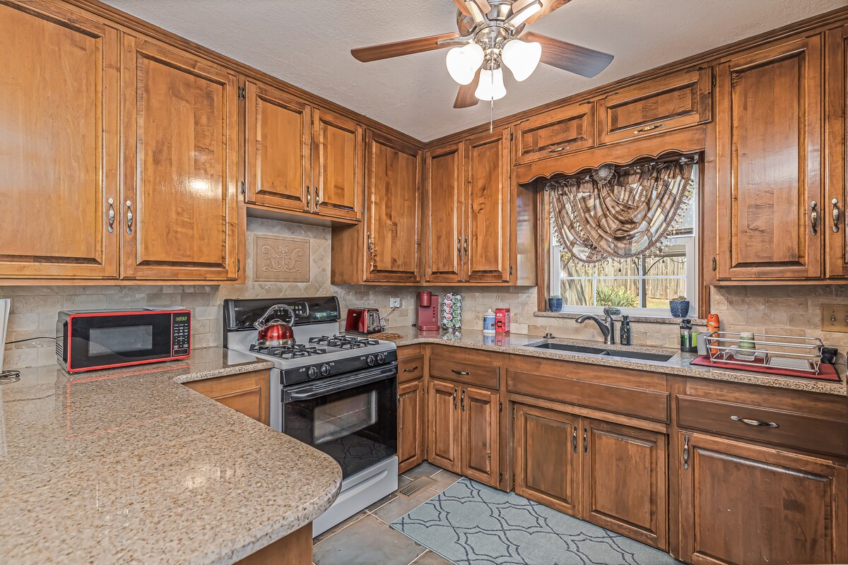 Ungakhange ukhangele ngaphaya kwale ndawo isandul 'ukwakhiwa eyi-4BR/2bath ukusuka kwiSithili saseRose eBroken Arrow. Yonwabela indawo evulekileyo enekhitshi elivulekileyo/indawo yokuhlala elungele iintsapho uze uphole kwiyadi engasemva yabucala enomgodi womlilo, i-spa nemidlalo yangaphandle. ✔ Umatrasi we-memory foam Imiqamelo ✔ ethambileyo neqinileyo ✔ I-65" 4K Fire TV ✔ I-Wifi Ekhawulezayo - 250mb+ ✔ Ibhafu Enamanzi Ashushu Yabantu Abayi-6 ✔ Iyadi engasemva ebiyelweyo ✔ Itafile enendawo yokosa inyama nomlilo ✔ Indawo yekofu neti Ikhitshi ✔ elinento yonke ✔ Umatshini wokuhlamba/wokomisa impahla ✔ I-Pack n Play ✔ Isitulo esiphakamileyo ✔ Itafile