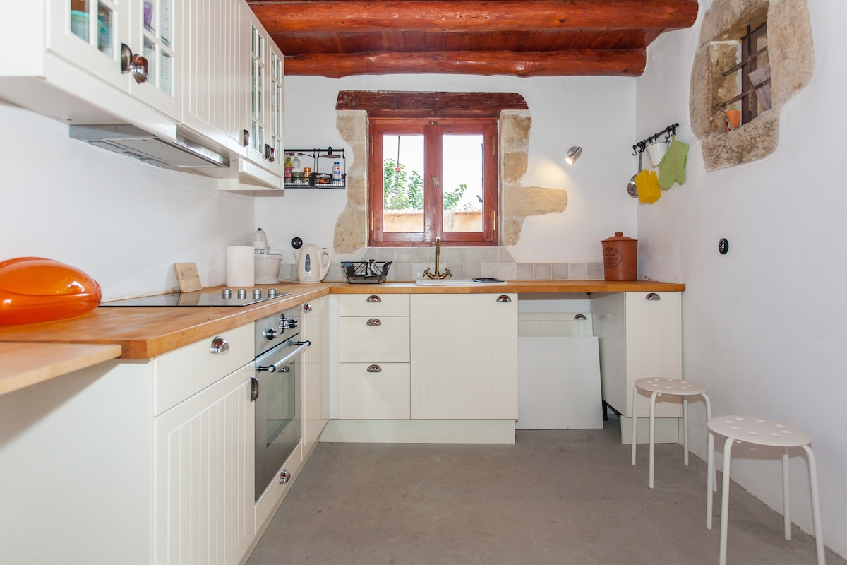 Wamkelekile kwindlu yethu entle yemveli. Yonwabela ubuhle bembali kule ndawo ihlaziyiweyo. Indlu yethu ilungele abahambi abafuna indawo ekhethekileyo nenomtsalane. Ngena kwihlabathi lobuhle obungaphelelwa lixesha njengoko ungena kwindlu yethu yesiqhelo, ephawulwa ziindonga zamatye indawo yokubasa umlilo ekhethekileyo, i-decorade ukuze ibonise imveli yasekuhlaleni ngoxa iqinisekisa ukuba itofotofo. Indlu yethu ikwiimitha eziyi-400 ukusuka embindini welali, ikwayindawo yokupaka yasimahla.