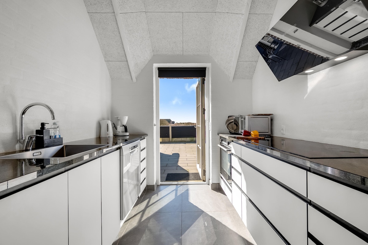 Indawo yethu yeholide ikwindawo ephambili – yonwabela ukubona indawo entle enentaba engekhe ilibaleke ngoxa umoya opholileyo wolwandle ukwenza uzive kamnandi. Ukusuka kumgangatho ophezulu ungade ujonge elwandle. Indawo yokuhlala etofotofo ejikeleze indawo yokubasa yenza kubekho imeko efudumeleyo. Zipholele kwi-sauna yabucala nakwibhafu enamanzi ashushu eza kubaswa ngamaplanga kwiveranda onokubona kuyo iintaba! Indawo efanelekileyo yokuphumla nokonwabela ubuhle bonxweme lwaseDenmark North Sea.