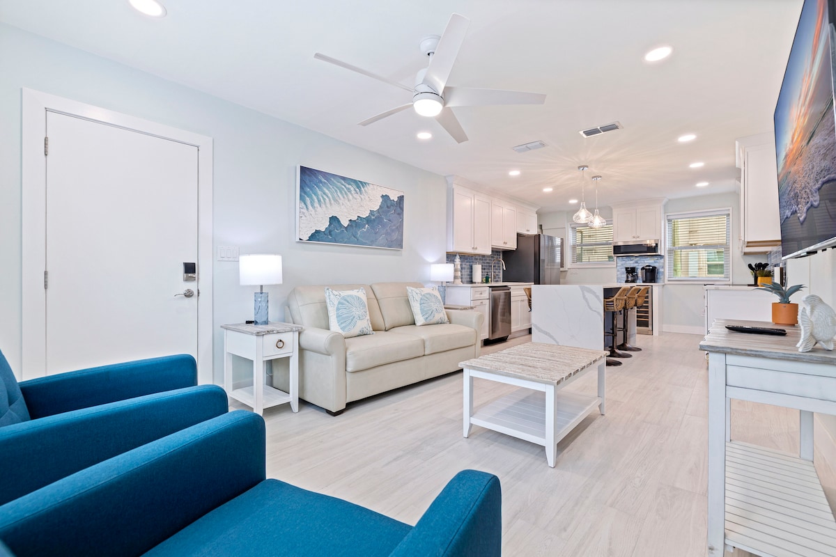 Inomtsalane, itofotofo, ikhethwe kakuhle/inesitokhwe esipheleleyo 1 Igumbi lokulala Iyunithi enendawo yayo yokungena yabucala, iCourtyard kunye nepuli enamanzi ashushu. Umzuzu omfutshane we-1 wokuhamba ukuya kwi-St. Pete 's Gulf side Upham Beach okanye zonke iimpilo zasebusuku ezininzi kunye neevenkile zokutyela kwiGulf Blvd. I-WiFi yamahhala (i-Spectrum) kunye ne-2 32" HD TV 's (Igumbi lokuhlala sofa bed & Bedroom Queen bed), zonke zibe ne-premium, i-movie, iindaba, kunye neziteshi zemidlalo. Le Yunithi inexabiso elifikelelekayo kuHlahlo lwabiwo-mali olucebisa ukuba yi-Premium Beach Location.
