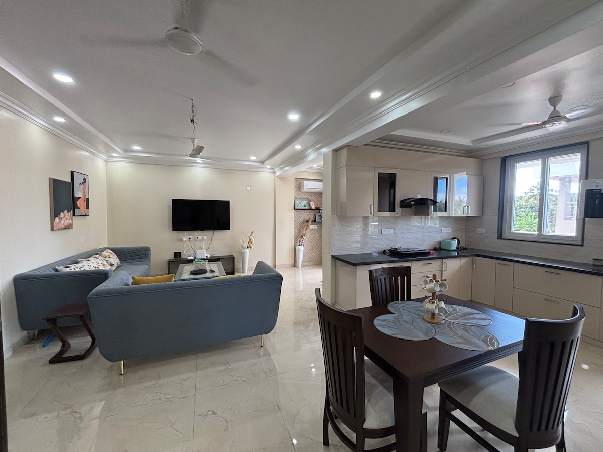 A beautiful fully furnished Studio for a perfect and comfortable holiday. –High speed Wi-Fi (100mbps+) –Balcony with view of the green surroundings –Fully-equipped kitchen –2 minutes walking distance to local restaurants –AC in the entire house –UPS for house –Housekeeping available on chargeable basis –Host living in Palolem for any local help –24 hours security in society –Free parking still parking –Elevator available –Taxi services available –Two wheeler available on rent