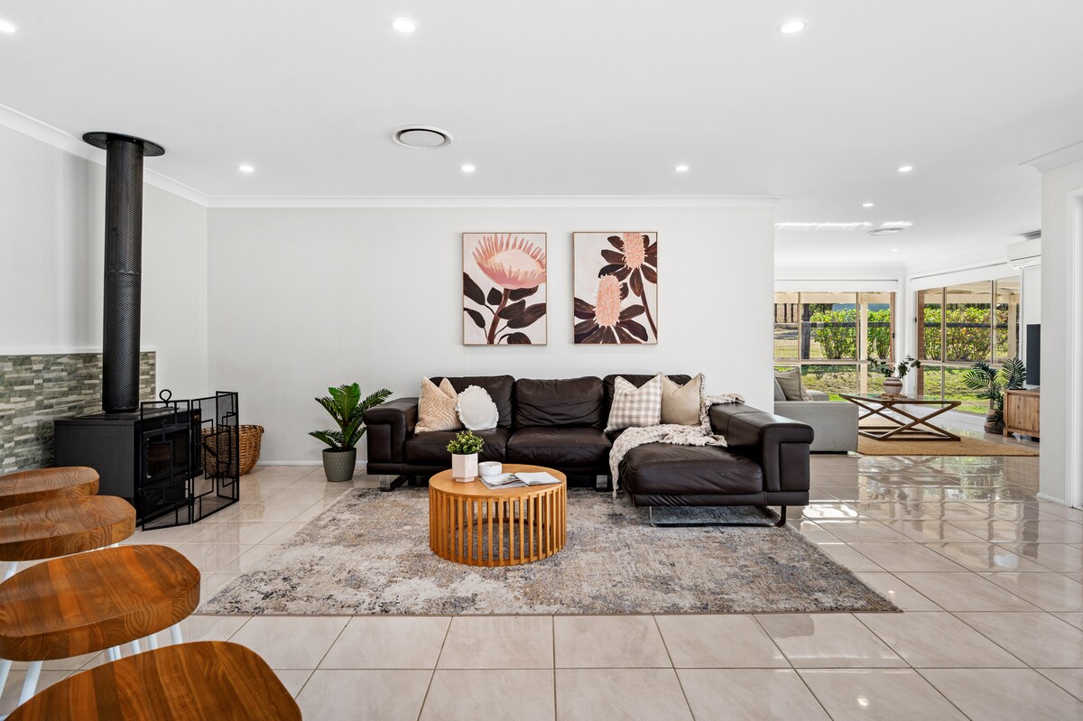 I-Eaglemont yindlu esemaphandleni, eneehektare eziyi-100 eseLambs Valley. - imizuzu eyi-30 ukuya eMaitland/eBranxton - Imizuzu eyi-40 ukuya kuMbindi Wezidiliya, ePokolbin, eHunter Valley - Imizuzu eyi-50 ukuya eNewcastle - Ngaphantsi nje kweeyure eziyi-2 1/2 ukusuka eSydney - I-1300ft Elevation Overlooking Breathtaking Views of the Valley I-Eaglemont Yindlu Entle, Eyakhiwe Ngobuchule Neendawo Ezibonwayo Kuwo Wonke Amagumbi Endlu. Phuma kwi-Hustle & Bustle yesixeko uze uze ubukele i-Sunrise on the Deck to Starry Nights by the Firepit.