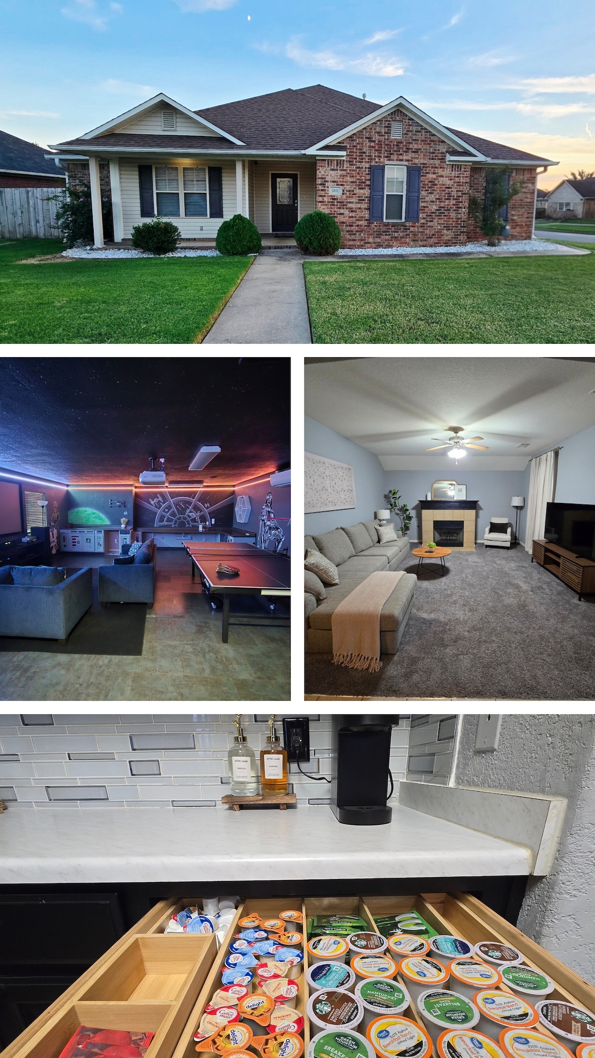 Relax in this central, peaceful 4BR, 2BA home. ** New fire-pit / hammock area** Ideal for families and work crews, this home offers plenty of parking, private backyard with a deck, grill, patio seating, and fire pit. Enjoy a cozy park with a playground and grills, with Hunt's Ball Field a few blocks away. Inside, a fully stocked kitchen awaits, with a coffee bar. Pack your favorite coffee pods to enjoy the available Keurig. Downtown dining, cafes, and nightlife are just a 5-minute drive!