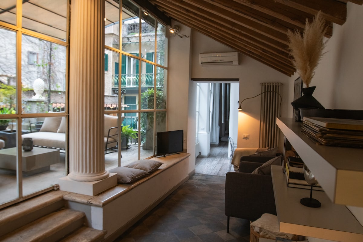 Le flethi itofotofo nethuleyo ikwenye yezona ndawo zidumileyo nezintle eRoma. Ngenxa yokuba isembindini wayo, kuza kuba lula kwaye kube nomtsalane ukufikelela kwiindawo ezininzi ezintle zaseRoma. Yiflethi okanye indlu ekwicomplex ethe cwaka njengoko ijonge kwinxalenye yesakhiwo ukuze uphole emva kosuku ujikeleze isixeko! Le flethi ikufuphi kakhulu neSpanish Steps ibe ikwindawo entle yokubuka iindawo ezihamba ngeenyawo, kuquka iTrevi Fountain, iColosseum neForum yaseRoma.