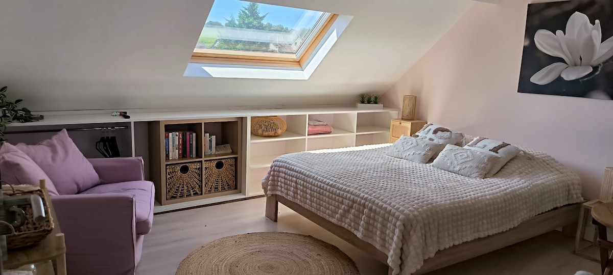 Wamkelekile "Kumaphupha Amasimi" eLe Cocon d 'Oscar, iholide yethu ezolileyo emaphandleni! Apha, ujonge emasimini nakwipuli ehonjiswe yindalo, ungonwabela ukuhlala kamnandi nokuhlaziya. Ziphe ixesha lokuxabisa ukuzola, ubuhle kunye nobumnandi bobomi bommandla wethu omhle. Siyathemba ukuba uziva usekhaya. Zive ukhululekile ukuqhakamshelana nathi ukuba ufuna nantoni na okanye unemibuzo ngaphambi nangexesha lokuhlala kwakho!