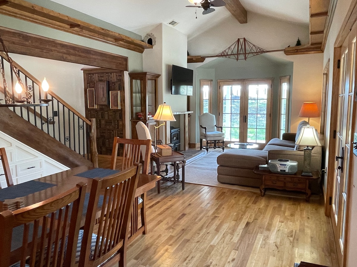 Molo, kwaye wamkelekile kwiThe Loft kwi-Alamo ! Yiza, uphumle, uze uphumle kule ndawo ivulekileyo eneenyawo eziyi-400nangaphezulu nezinefenitshala. Ifumaneka kwindlu yam ngaphezu kwegaraji ephindwe kabini. Inebhedi enkulu eyi-1, ikhabhathi, igumbi lokuhlambela elikhulu, nekhitshi elinesinki, isitovu esiyi-2, ifriji nomatshini wokwenza ikofu we-Keurig. Ikwanayo ne-Smart TV ne-WiFi. Akuvumelekanga ukutshaya. Uza kuba nedekhi yakho yabucala nomnyango wabucala wokungena kwizitepsi eziya kwiloft.