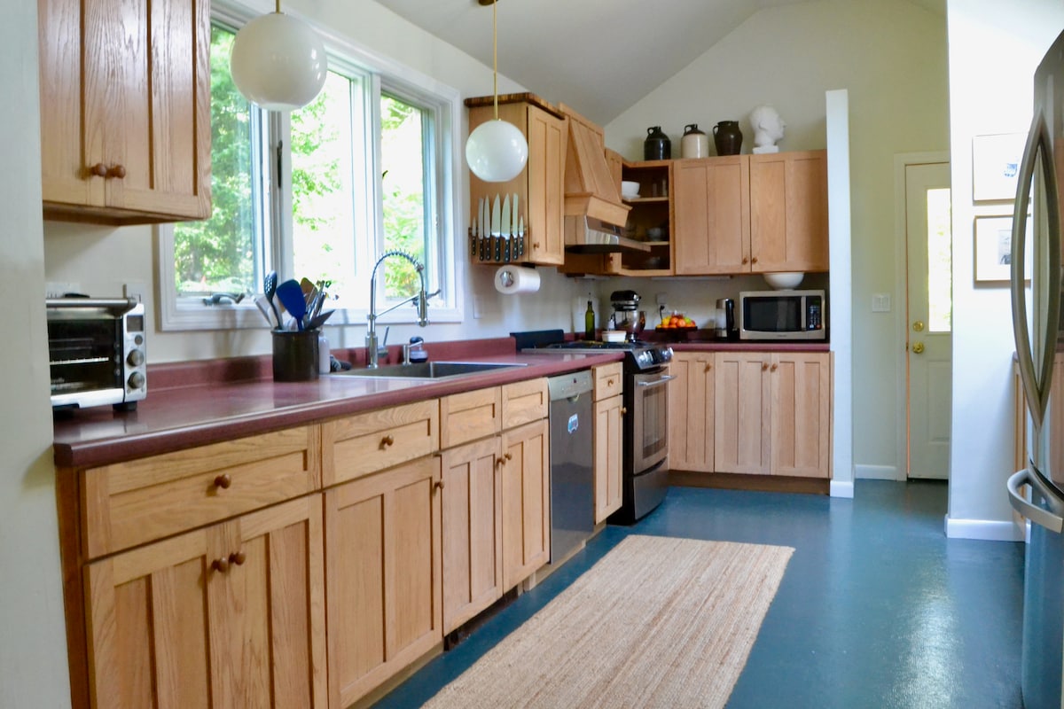 Indlu ye-circa ehlaziyiweyo ye-1920 kwidolophu yaseKholeji yaseNew England. Ukuhamba imizuzu esibhozo ukuya edolophini ngeevenkile zokutyela, iibhari, iivenkile, kunye nevenkile yokutya. Isitayile sangoku esihle. Vula ingqiqo esezantsi ngesofa, ibhedi emini (ilanga!), nekhitshi elenziwe ngumpheki. Inqanaba lesibini elineebhedi ezinkulu ezimbini nebhalkhoni encinci. Iikhilomitha zemizila yokuhamba ngeenyawo nehlathi, ezigcwele izilwanyana zasendle. Ngaphantsi kwemizuzu eyi-5 ngemoto ukuya kumzila weemayile eziyi-1.5 ecaleni koMlambo iSandy, kunye nokuqubha okuhlaziyayo.