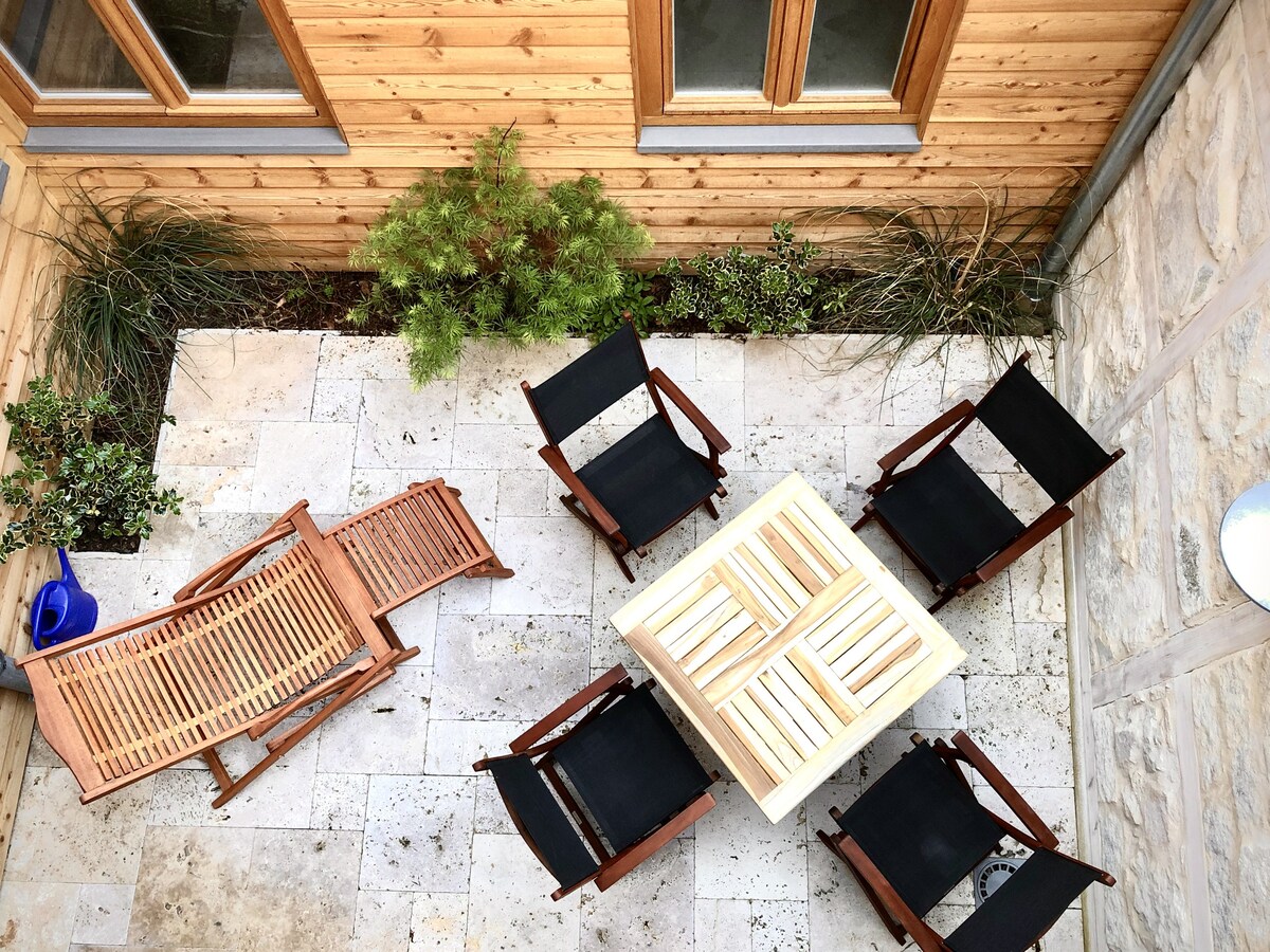 Iflethi okanye indlu ekwicomplex ekhethekileyo ekwindawo yokugaya edwelisiweyo phakathi kweendawo nee-orchards. I-80sqm enamagumbi okulala ayi-2 ayi-2 kwifama elungisiweyo, eneminyaka eyi-500 ubudala kwifama enamacala ayi-3 kwindawo efihlakeleyo emlanjeni. Izixhobo ezikumgangatho ophezulu, ikhitshi lale mihla negumbi lokuhlambela, ingqalelo kwiinkcukacha kunye nezilwanyana ezilungisiweyo.