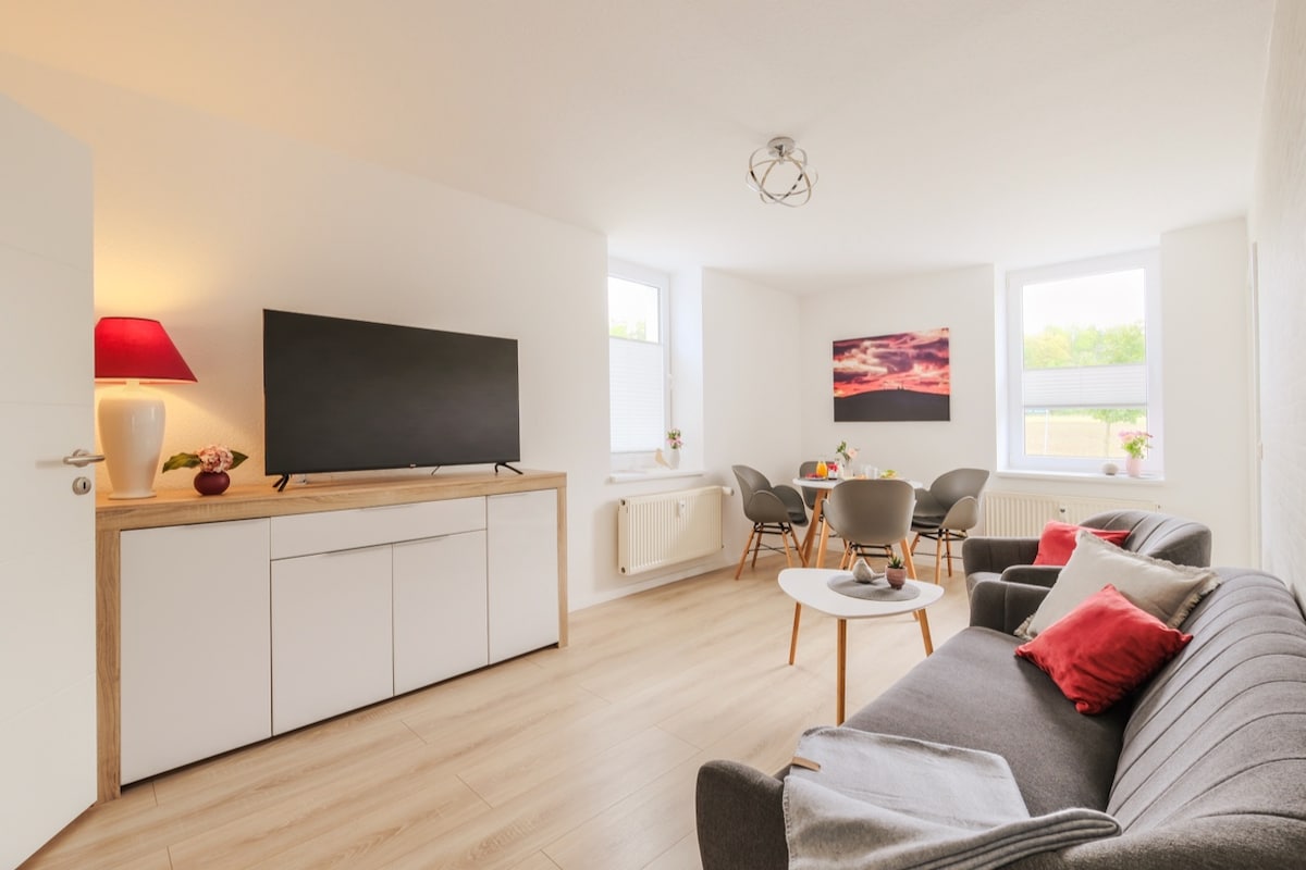 Die Wohnung befindet sich in der 1. Etage des Hauses. Die renovierte Wohnung hat 1 gemütliches Wohnzimmer, 1 großzügiges Esszimmer, 2 Schlafzimmer, 1 Badezimmer und eine moderne Küche. In ca. 10 Minuten erreichen Sie die Innenstadt von Wernigerode, den Marktplatz mit dem Rathaus und den vielen Restaurants und Geschäften. Die Badeanstalt befindet sich gegenüber, auch die Schwimmhalle ist ca. 400 Meter entfernt.